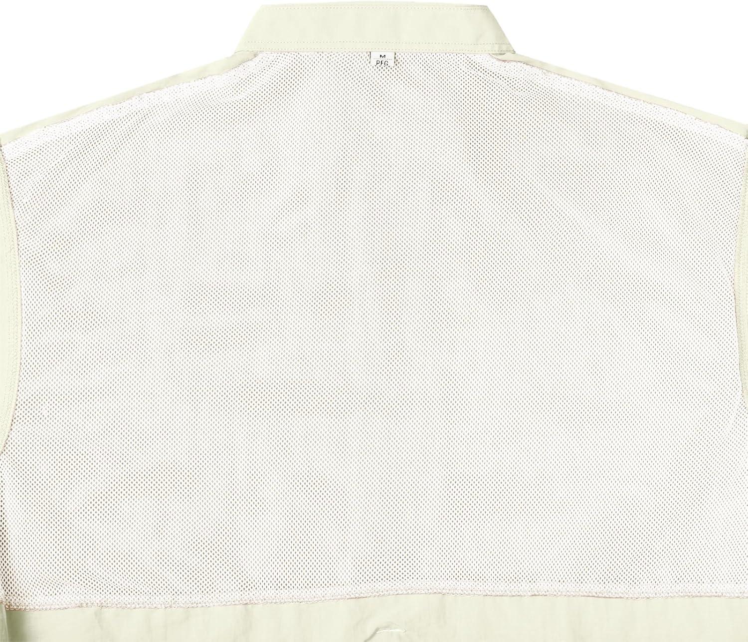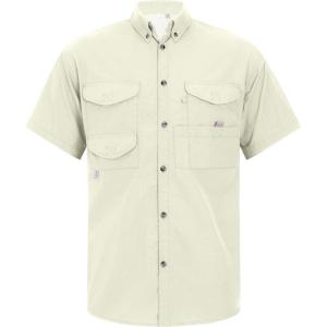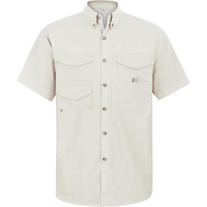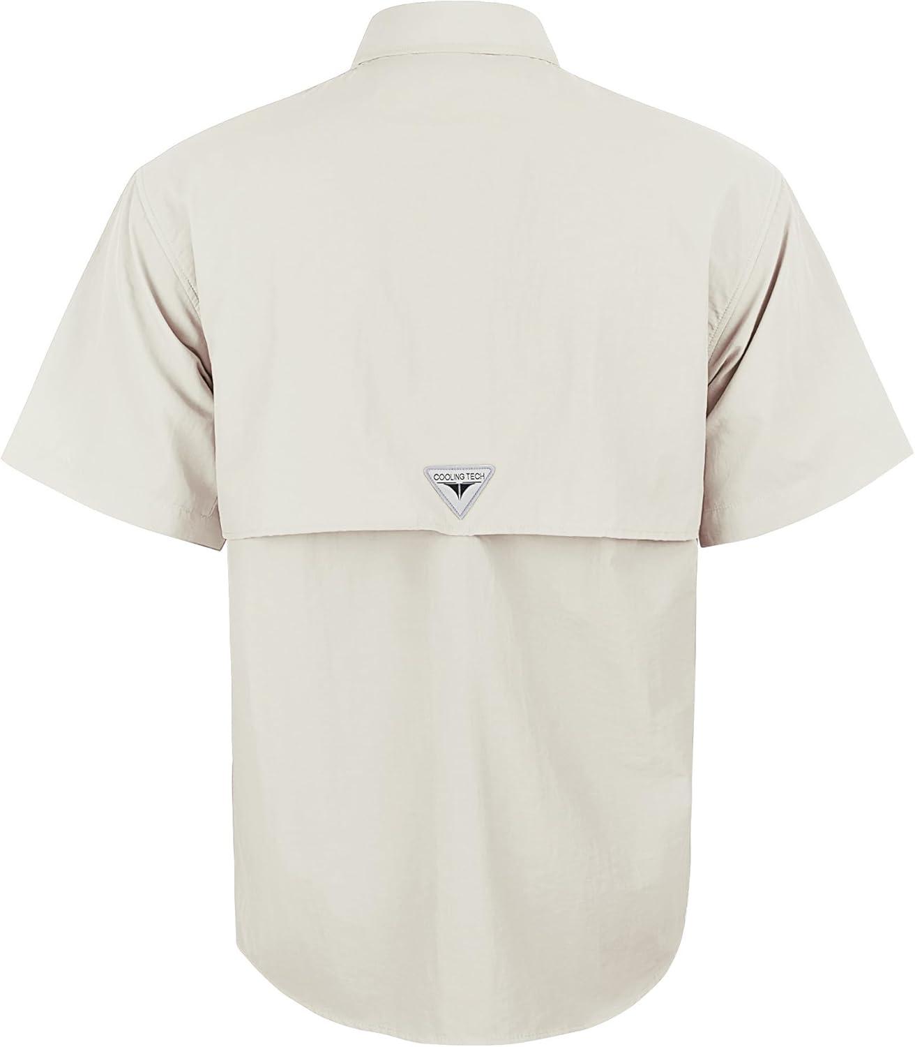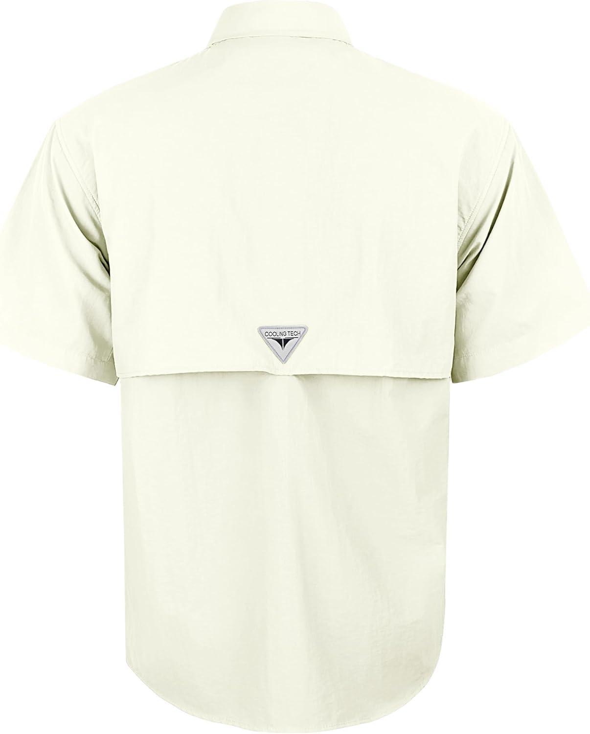 • Alimens & Gentle Short Sleeve Fishing Shirt Wicking Fabric Sun Protection Casual Button Down Shirts(Beige White)