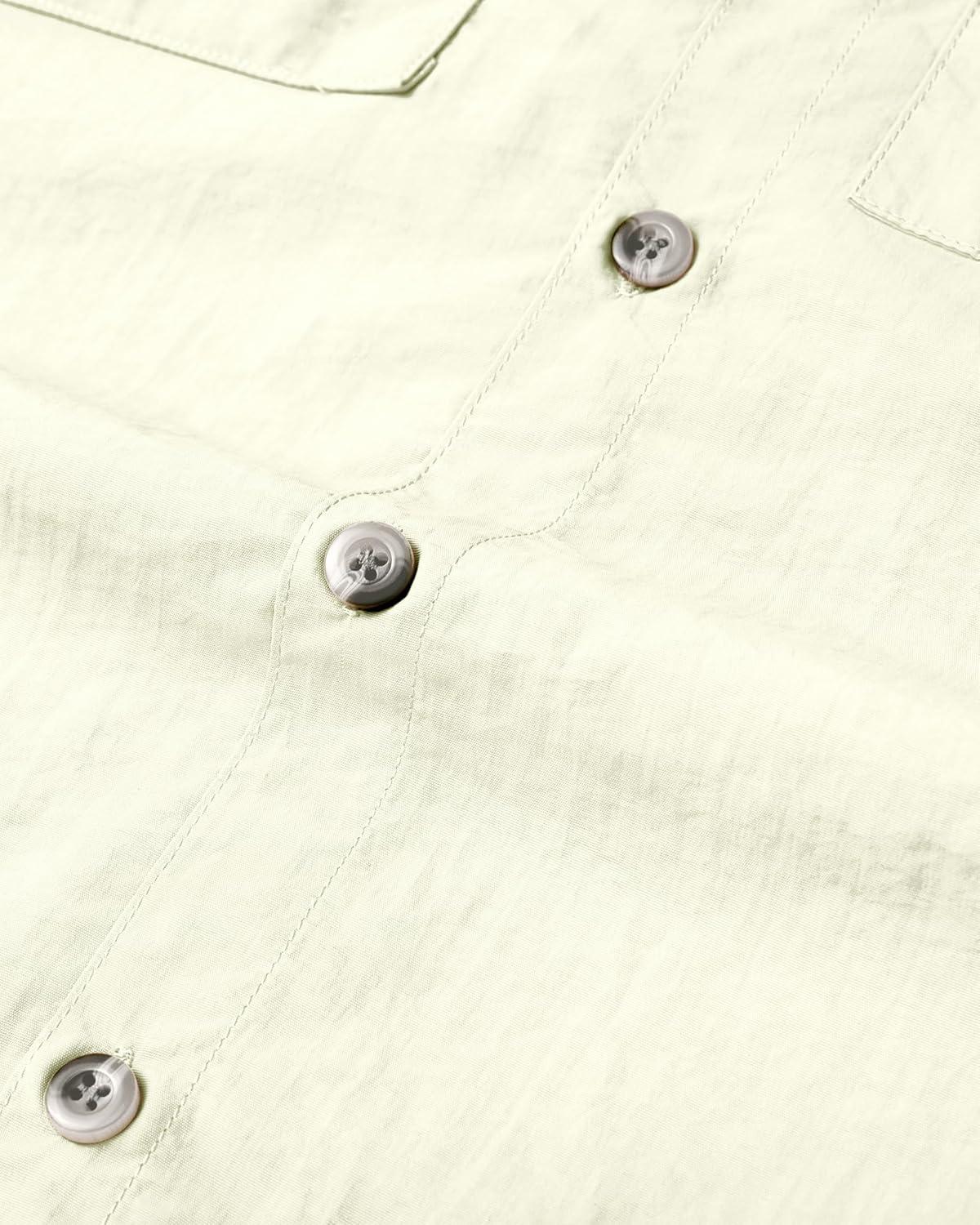 Alimens & Gentle Short Sleeve Fishing Shirt Wicking Fabric Sun Protection Casual Button Down Shirts(Beige White)
