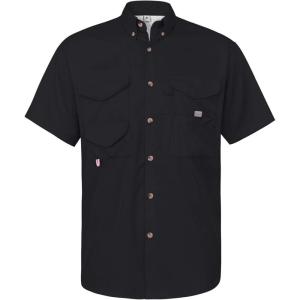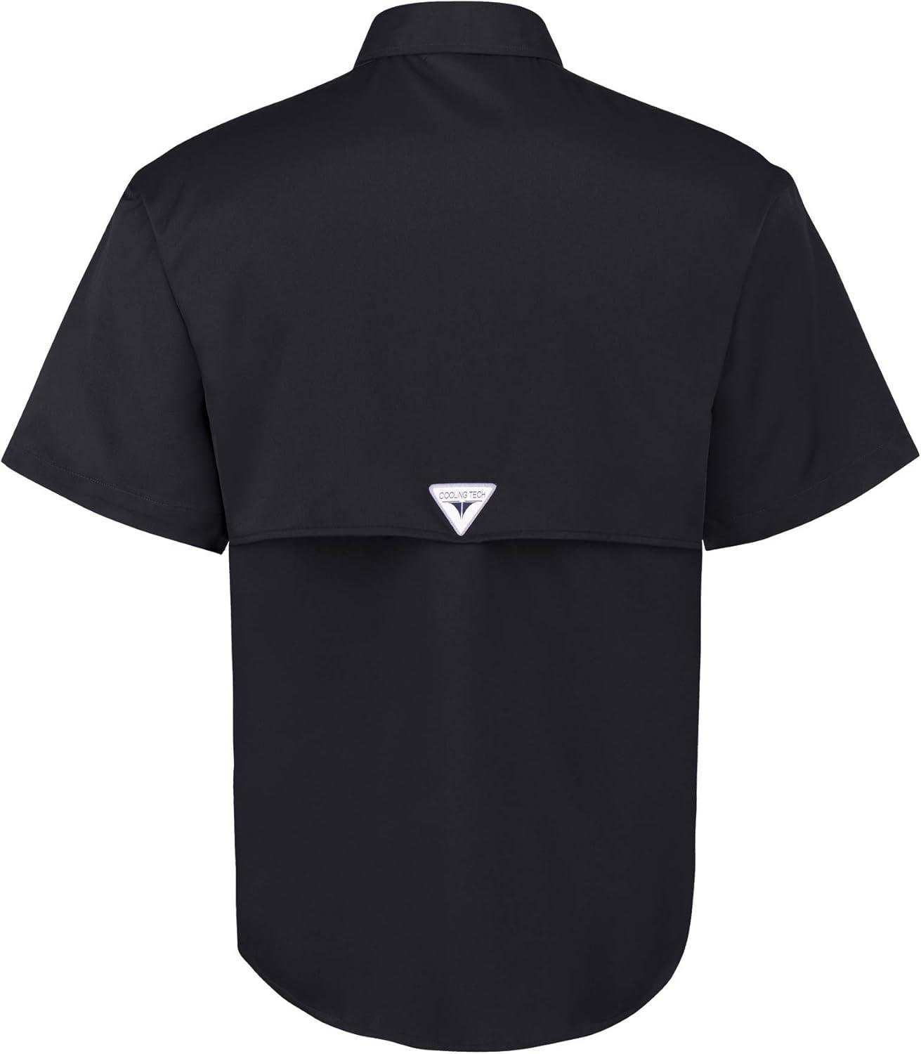 • Alimens & Gentle Short Sleeve Fishing Shirt Wicking Fabric Sun Protection Casual Button Down Shirts(Black)