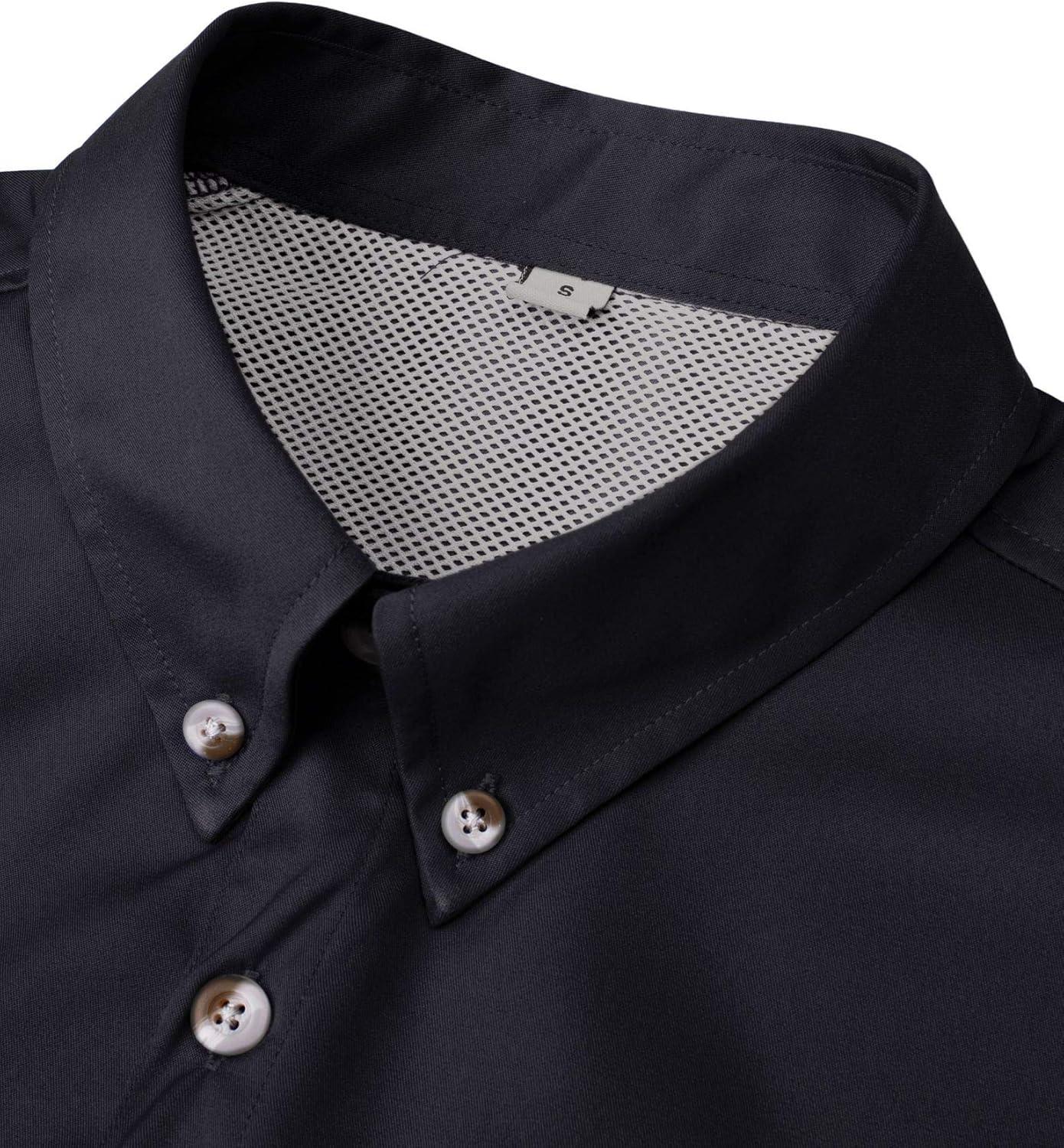 • Alimens & Gentle Short Sleeve Fishing Shirt Wicking Fabric Sun Protection Casual Button Down Shirts(Dark Grey)