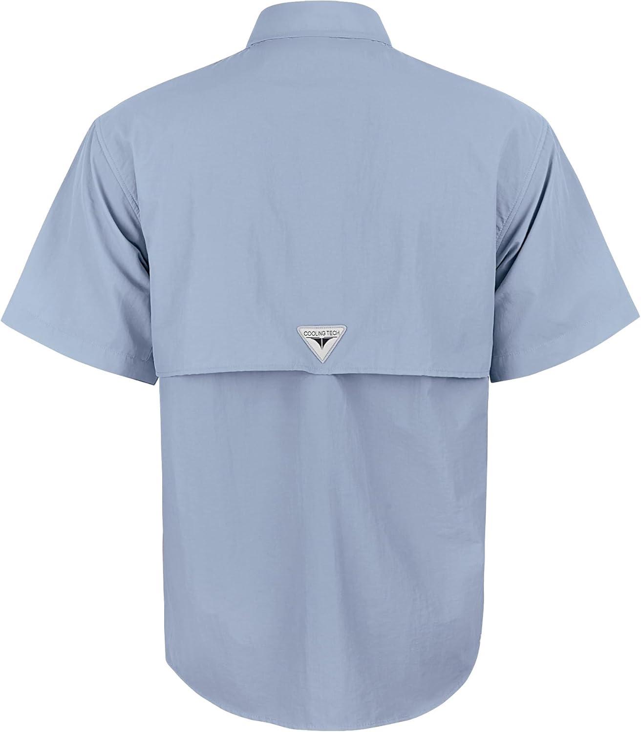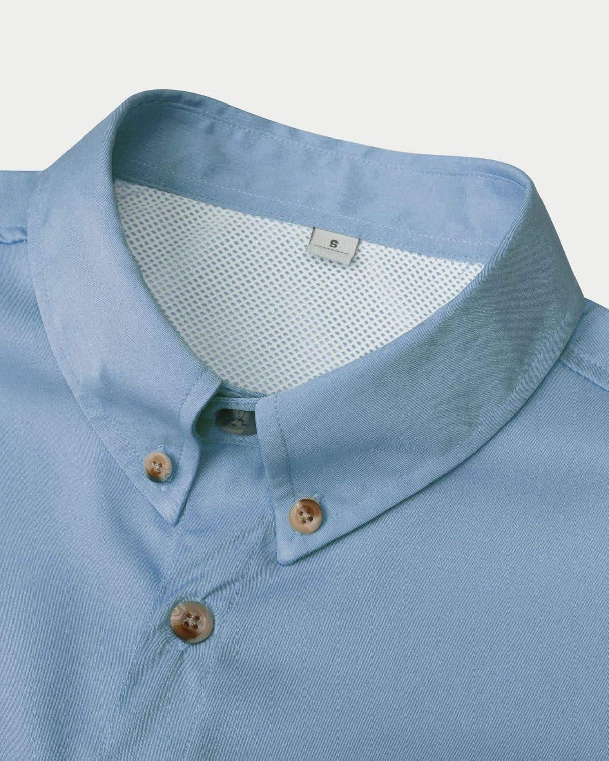 • Alimens & Gentle Short Sleeve Fishing Shirt Wicking Fabric Sun Protection Casual Button Down Shirts(Blue)