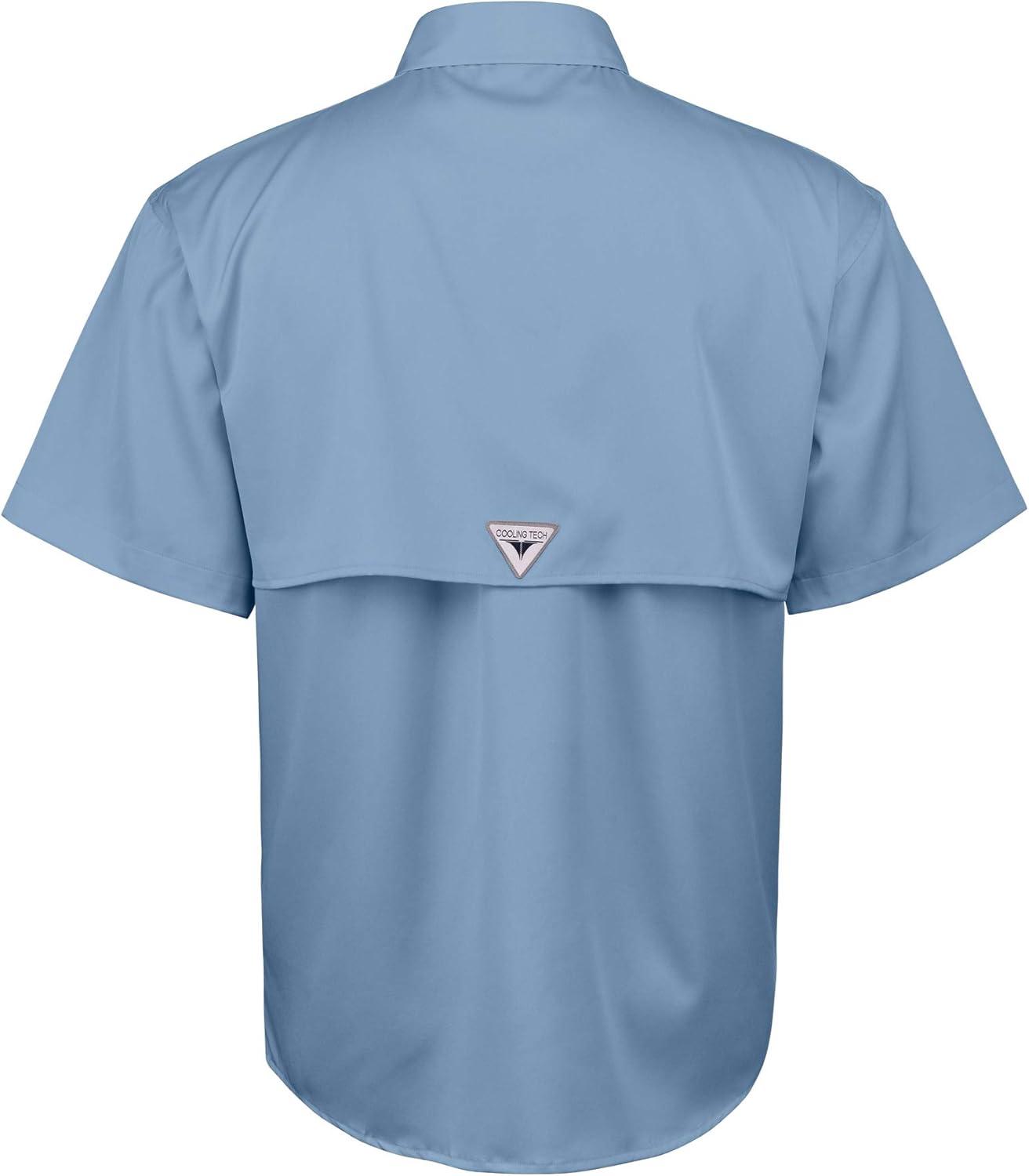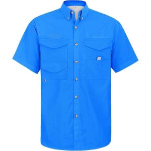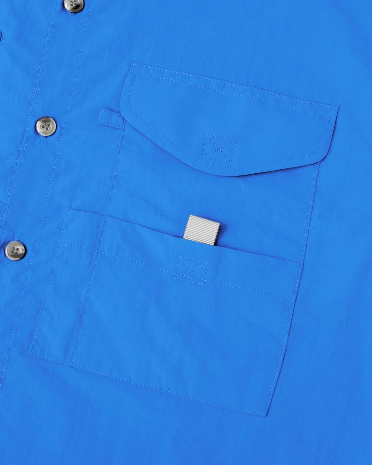 • Alimens & Gentle Short Sleeve Fishing Shirt Wicking Fabric Sun Protection Casual Button Down Shirts(Bright Blue)