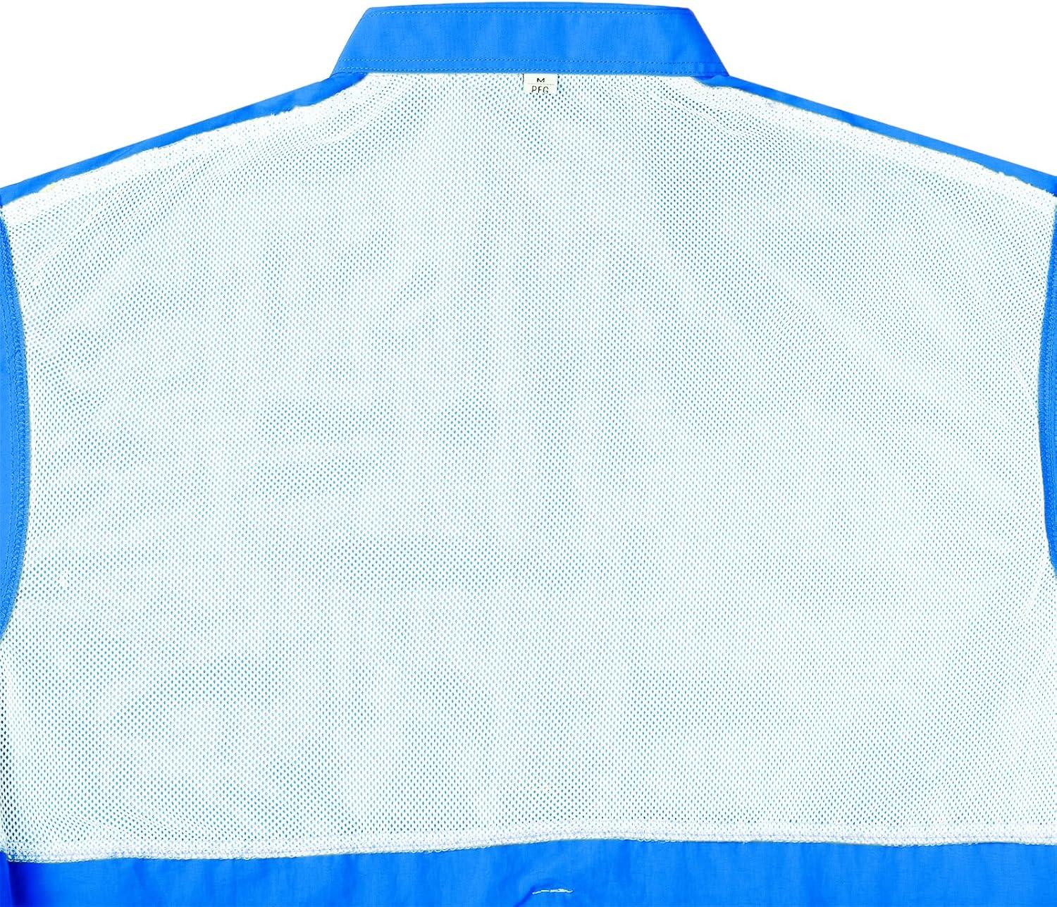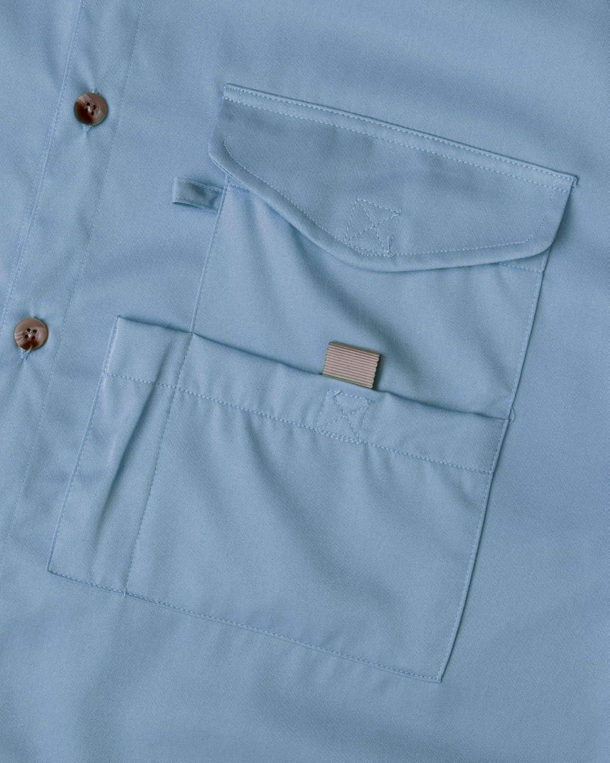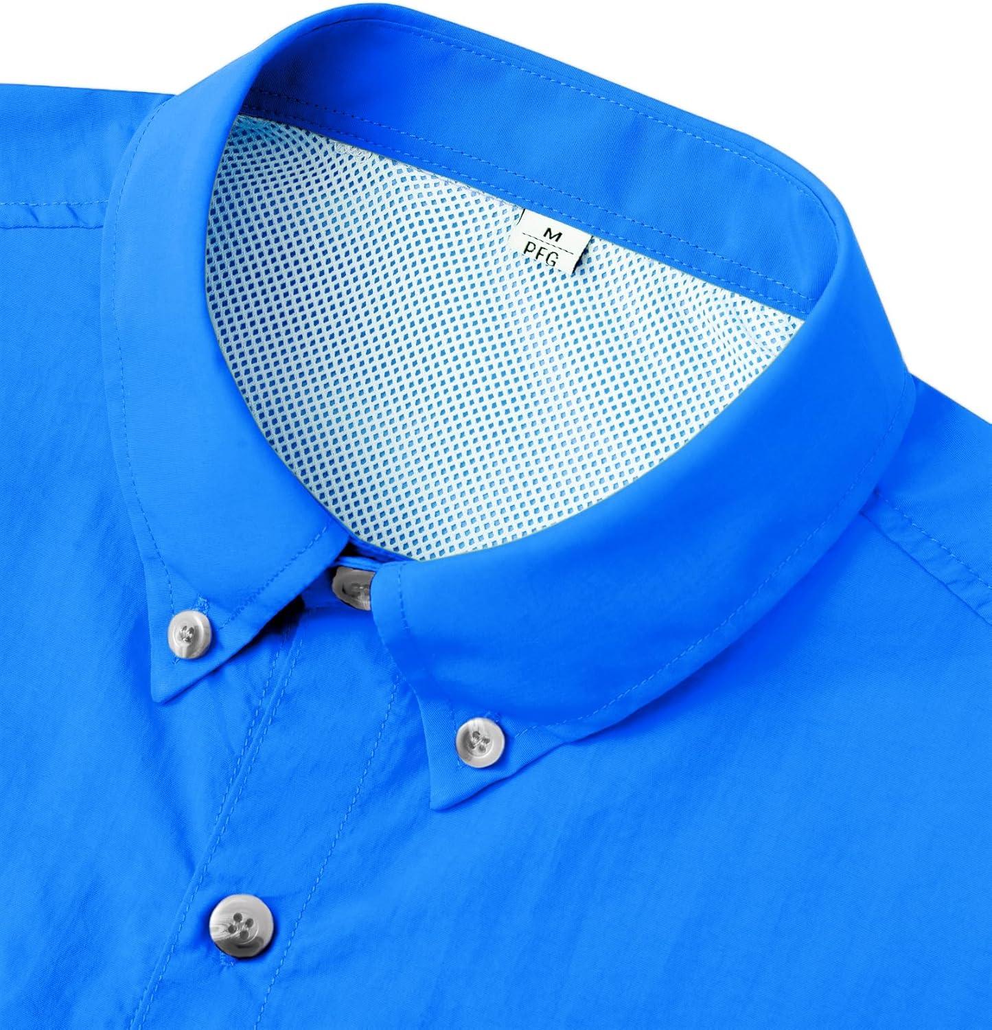 Alimens & Gentle Short Sleeve Fishing Shirt Wicking Fabric Sun Protection Casual Button Down Shirts(Bright Blue)
