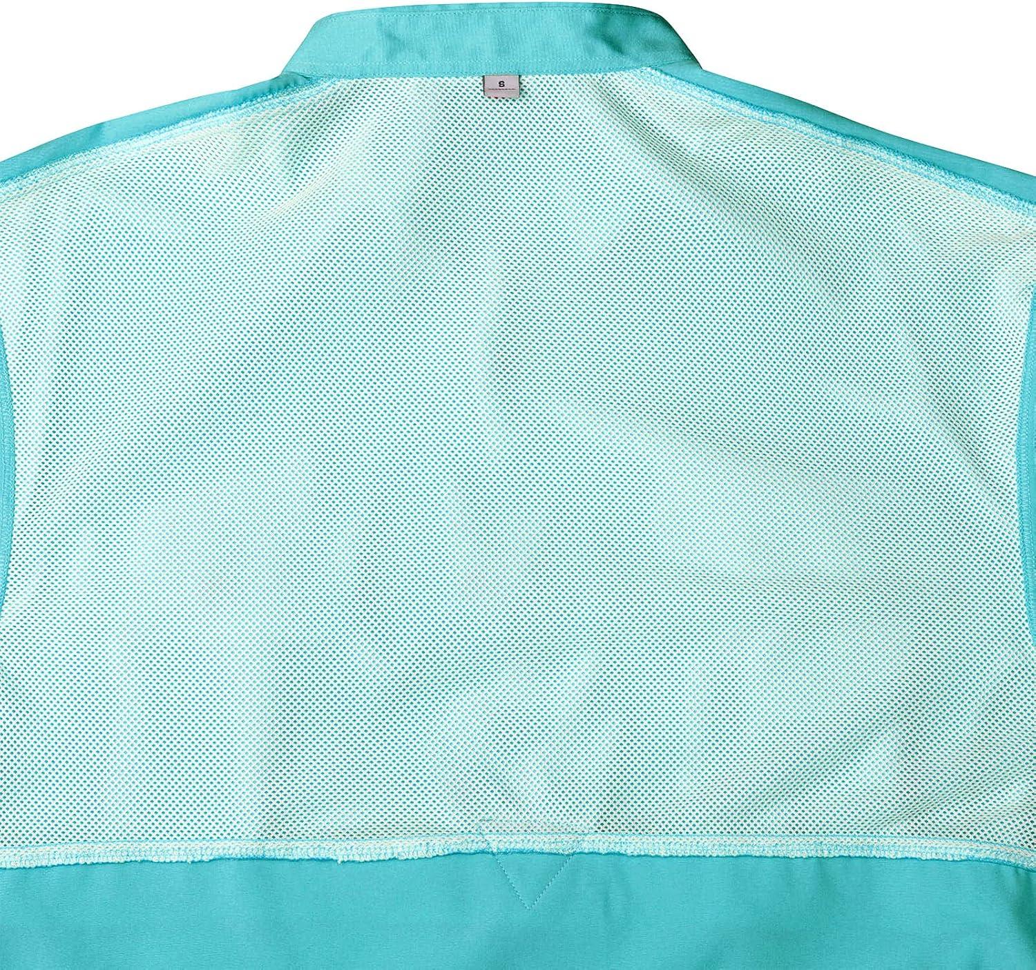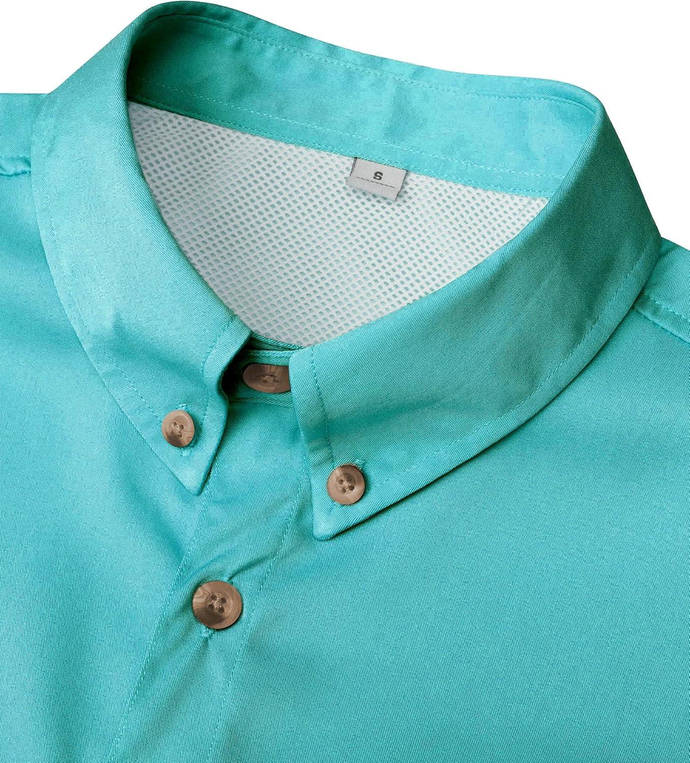 Alimens & Gentle Short Sleeve Fishing Shirt Wicking Fabric Sun Protection Casual Button Down Shirts(Blue Green)