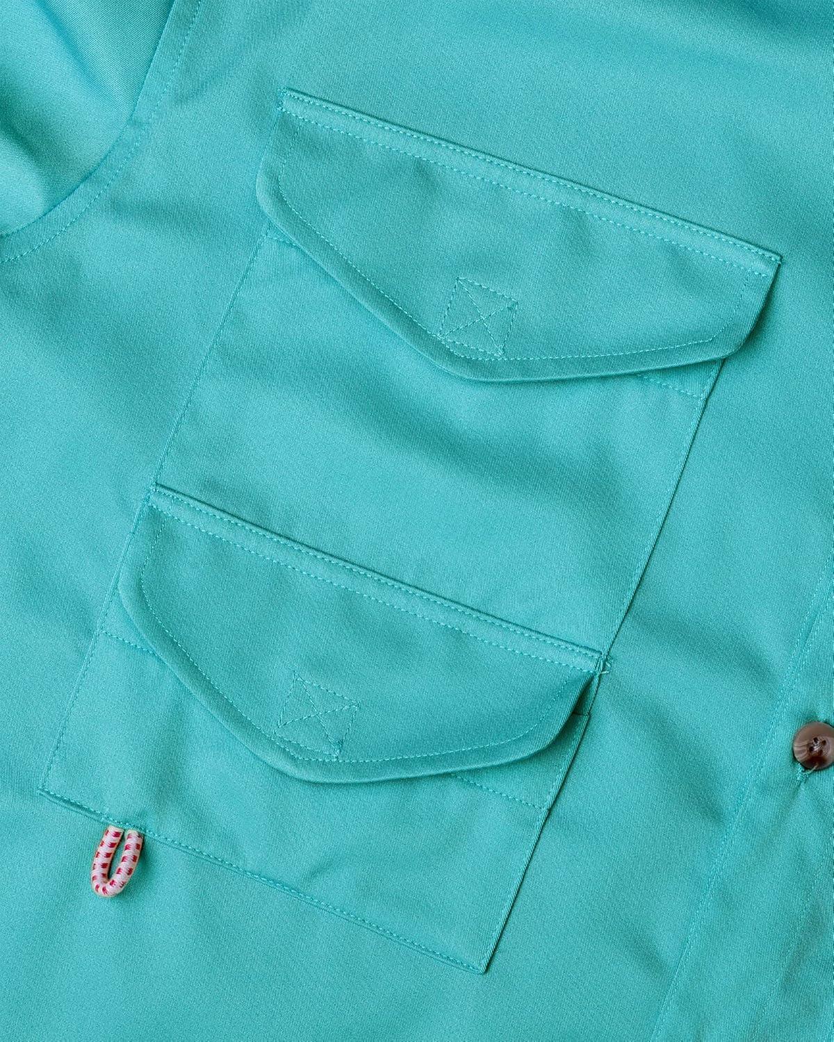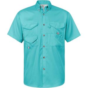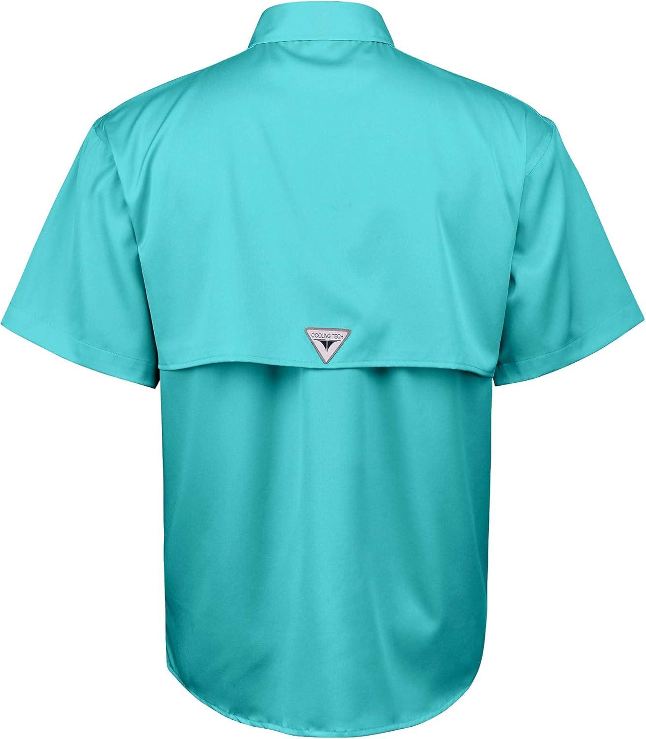 • Alimens & Gentle Short Sleeve Fishing Shirt Wicking Fabric Sun Protection Casual Button Down Shirts(Blue Green)