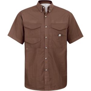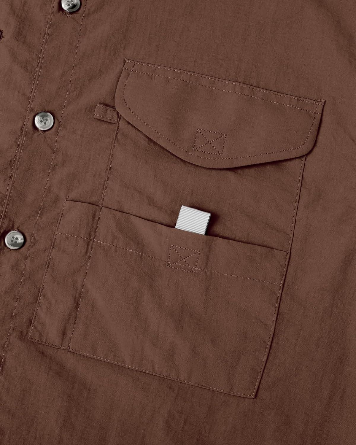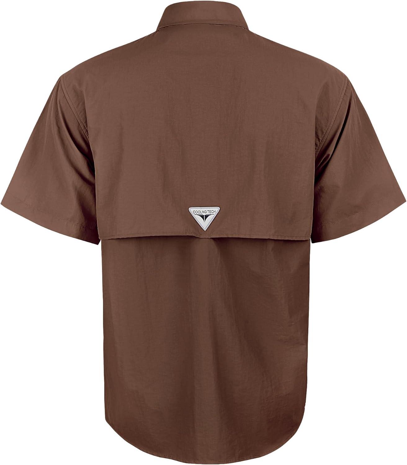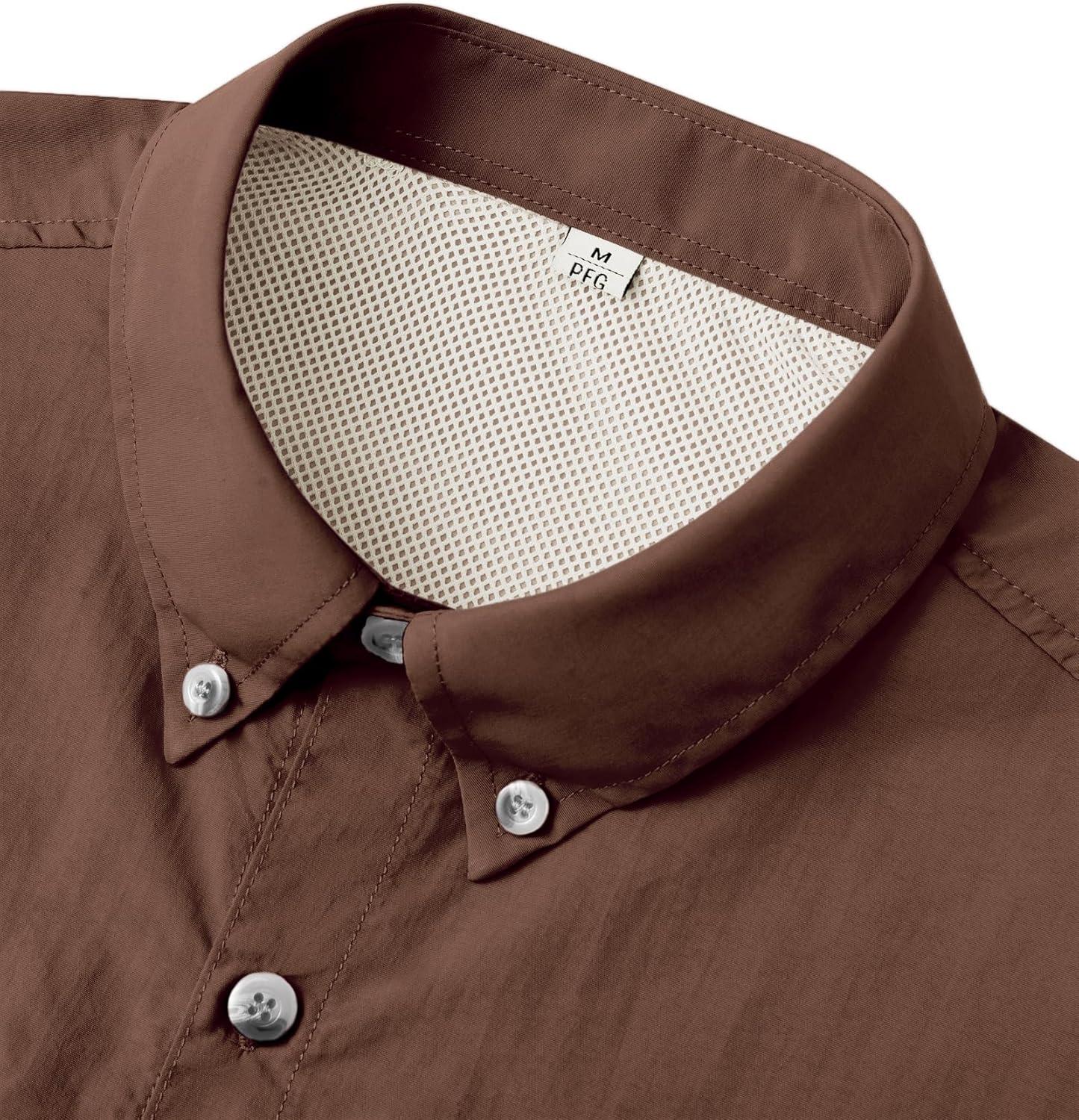 • Alimens & Gentle Short Sleeve Fishing Shirt Wicking Fabric Sun Protection Casual Button Down Shirts(Brown)