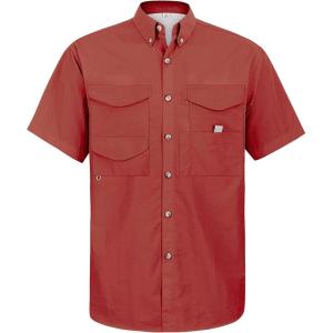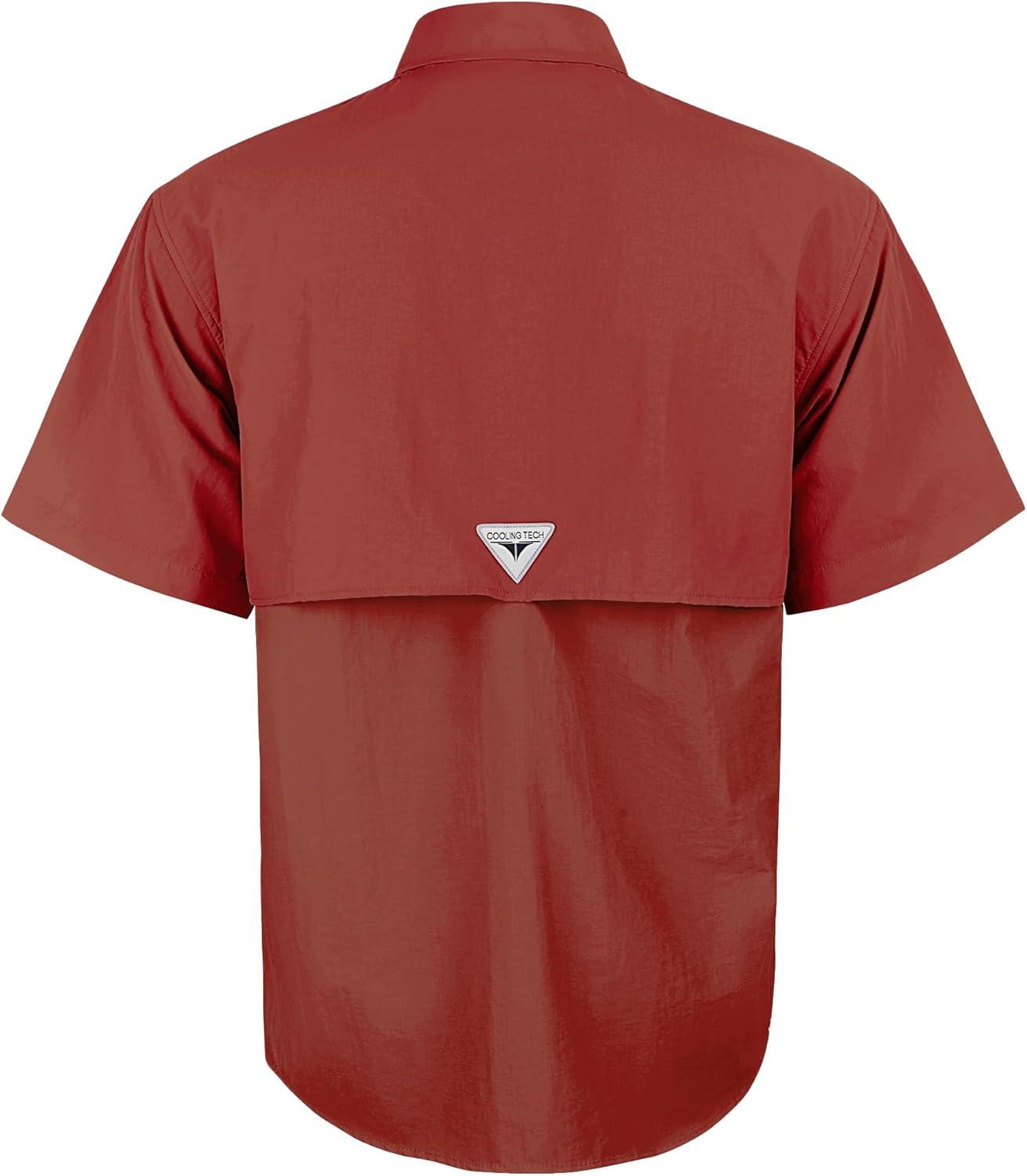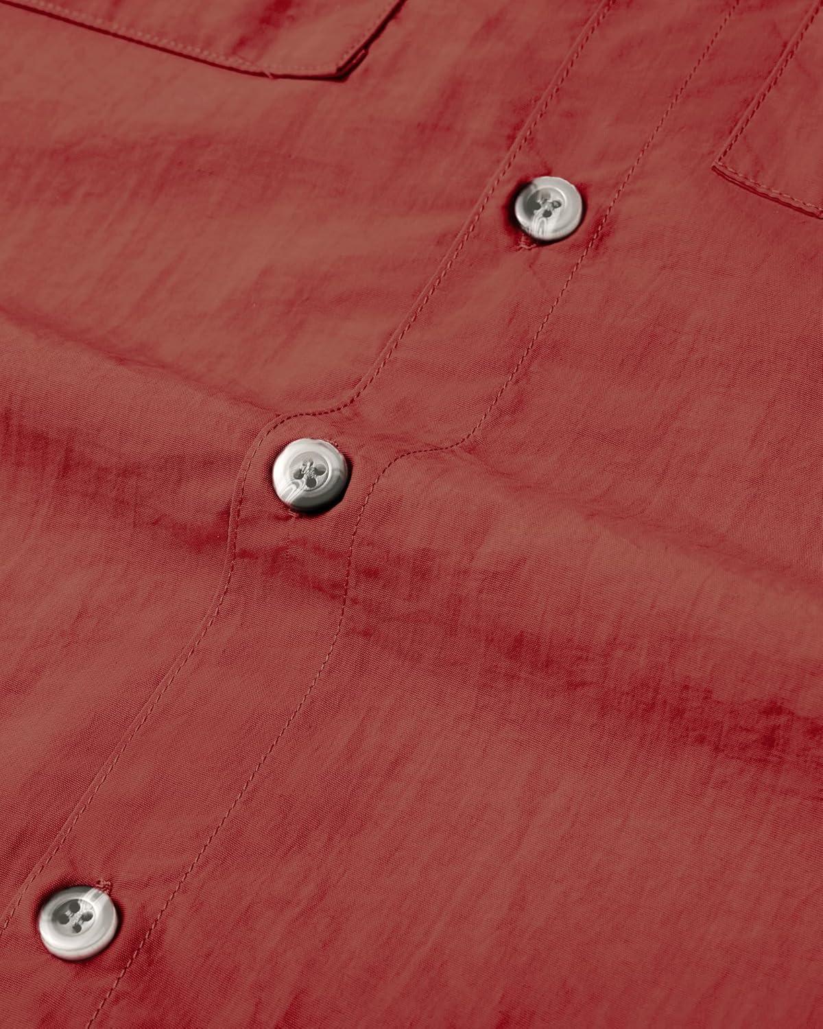 • Alimens & Gentle Short Sleeve Fishing Shirt Wicking Fabric Sun Protection Casual Button Down Shirts(Burgundy)