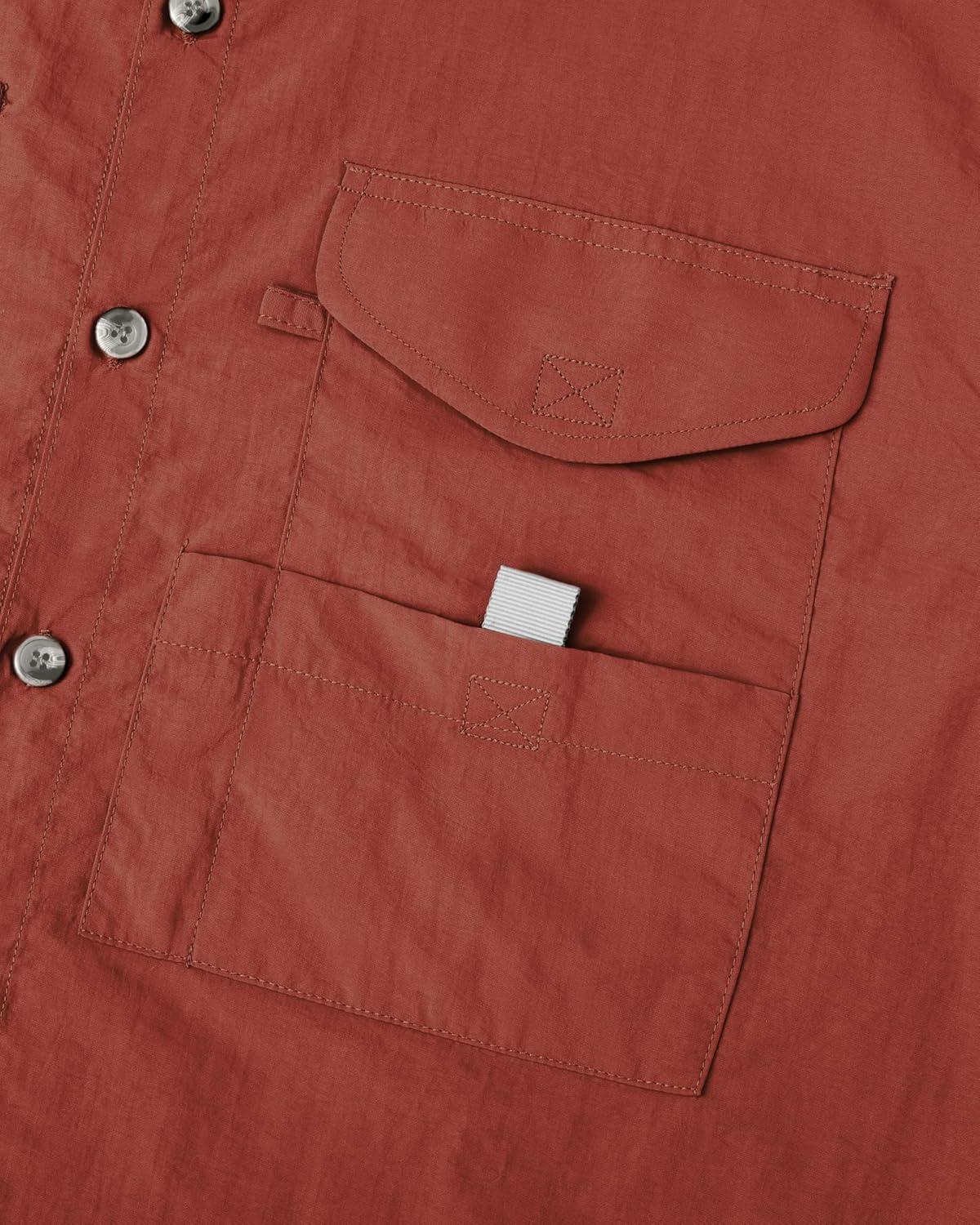 Alimens & Gentle Short Sleeve Fishing Shirt Wicking Fabric Sun Protection Casual Button Down Shirts(Burgundy)