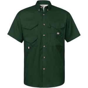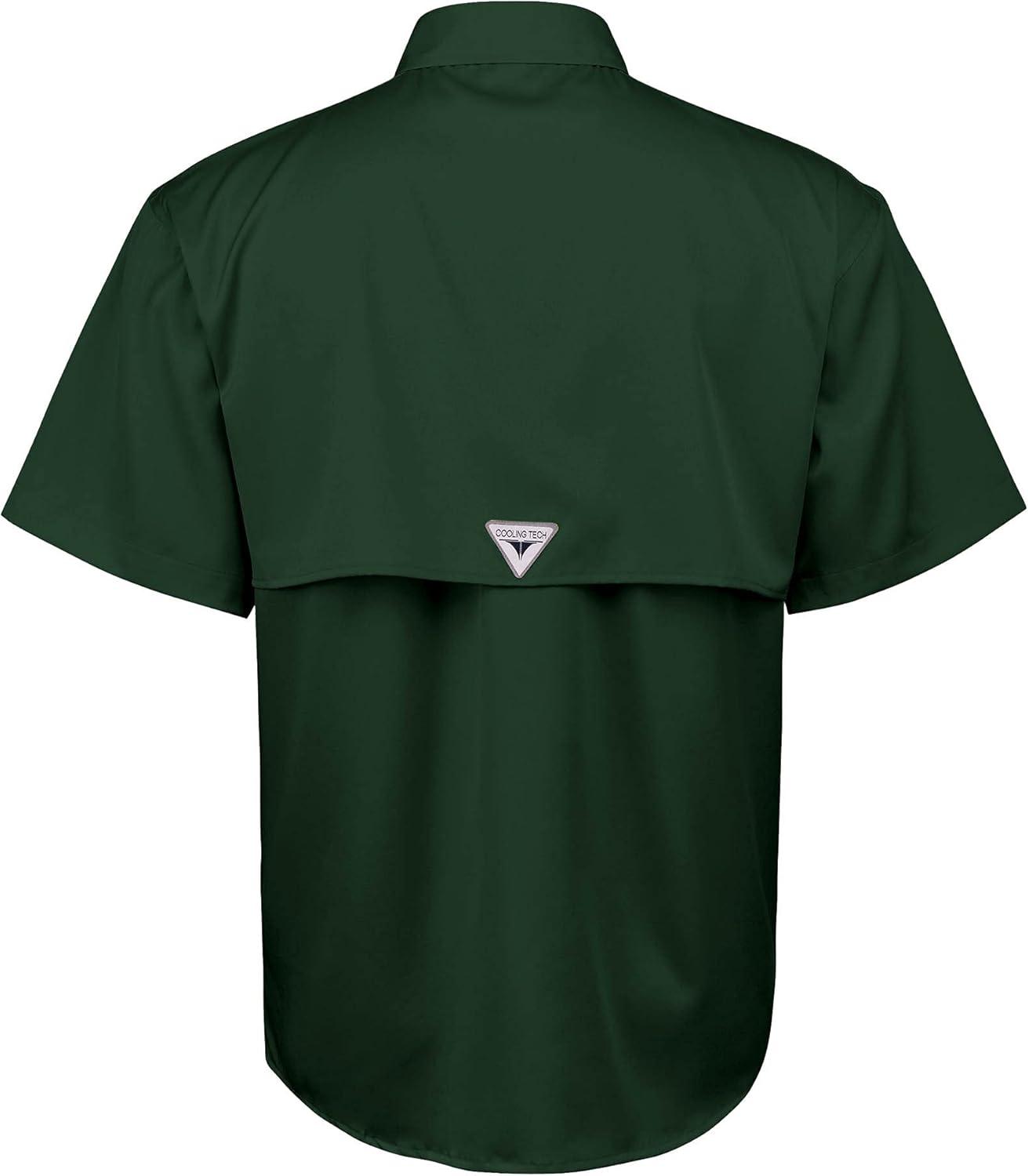 • Alimens & Gentle Short Sleeve Fishing Shirt Wicking Fabric Sun Protection Casual Button Down Shirts(Dark Green)