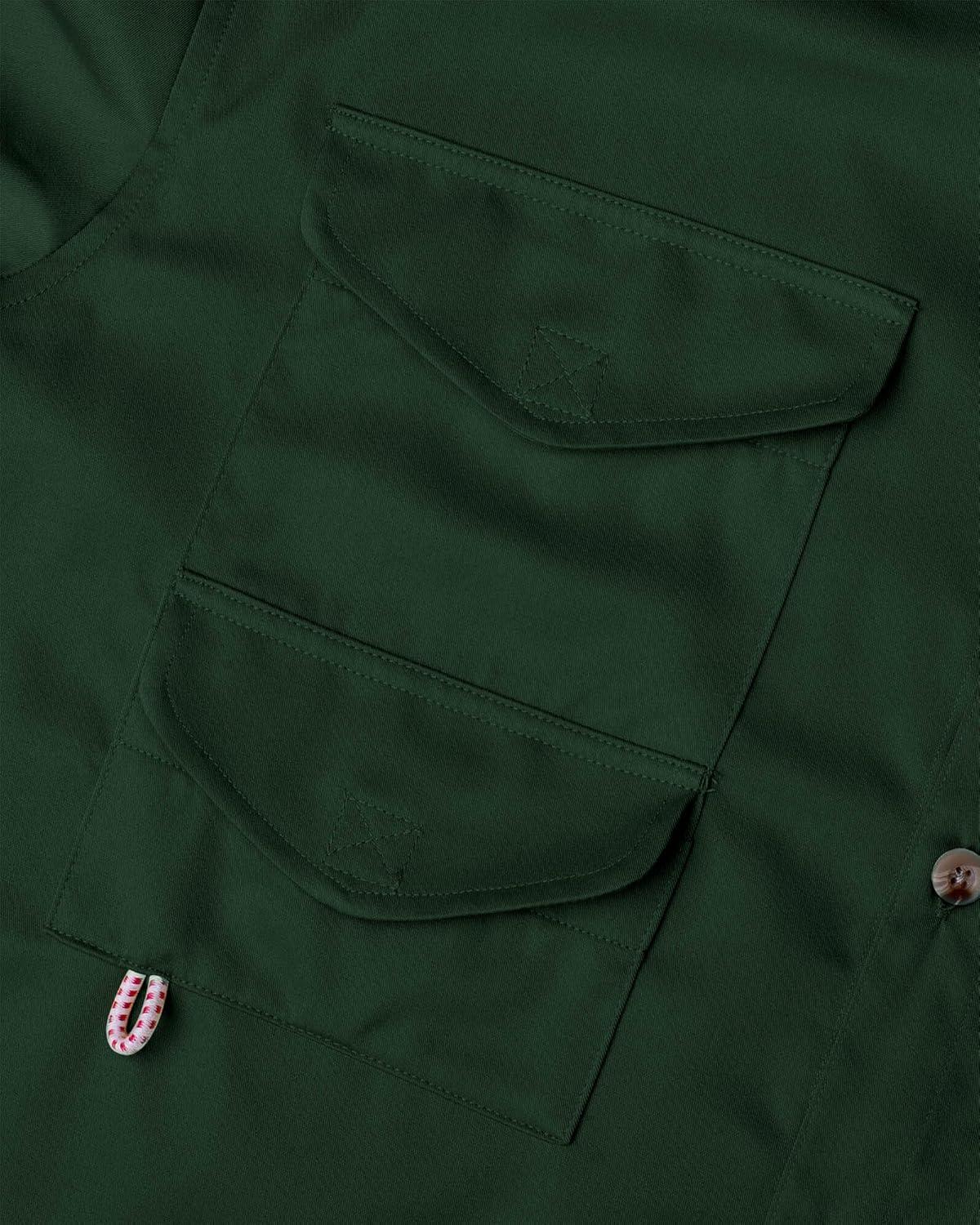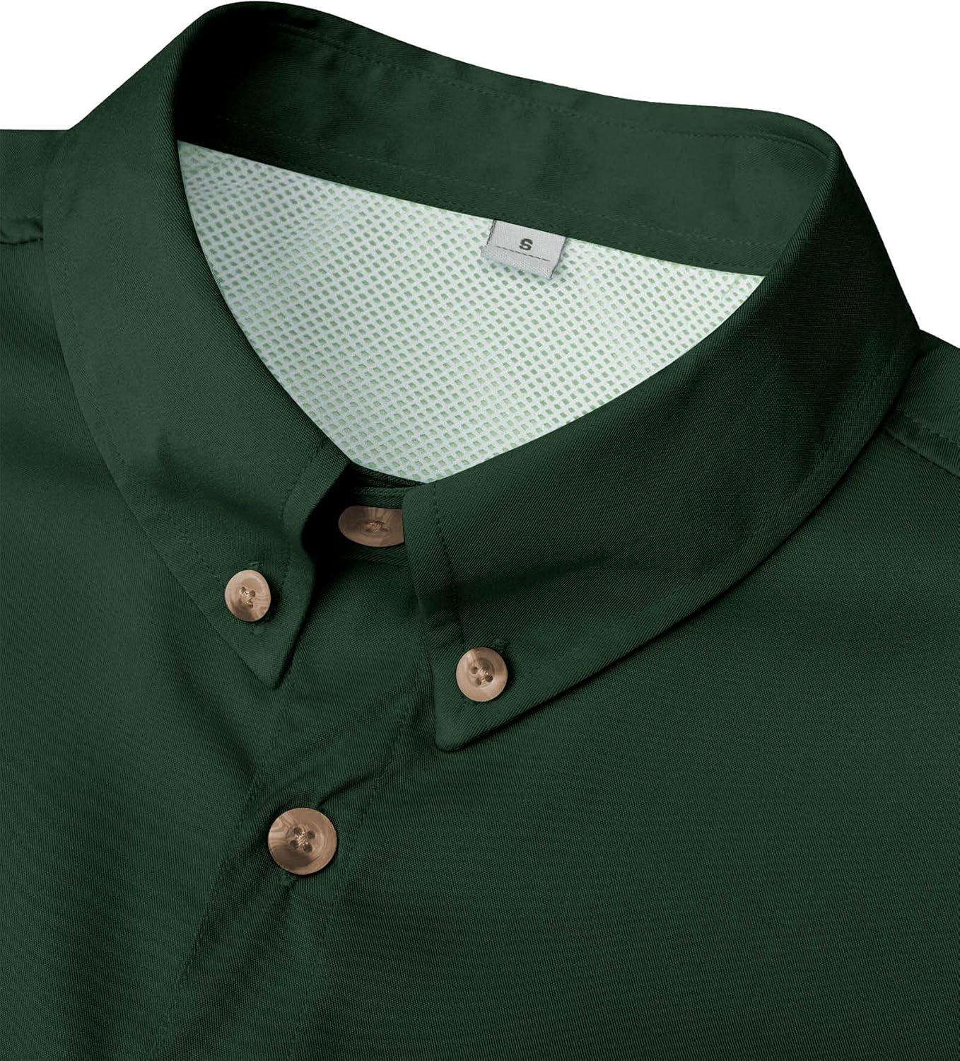 Alimens & Gentle Short Sleeve Fishing Shirt Wicking Fabric Sun Protection Casual Button Down Shirts(Dark Green)