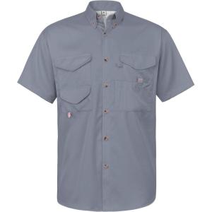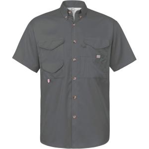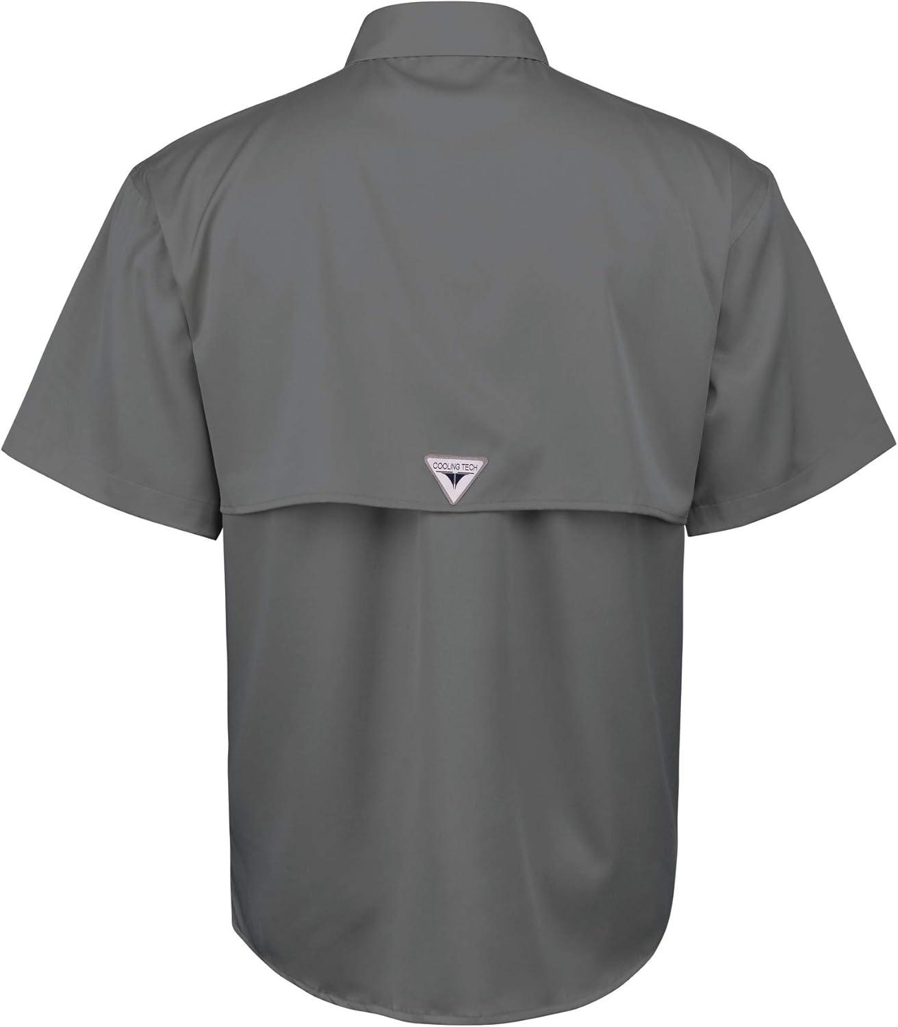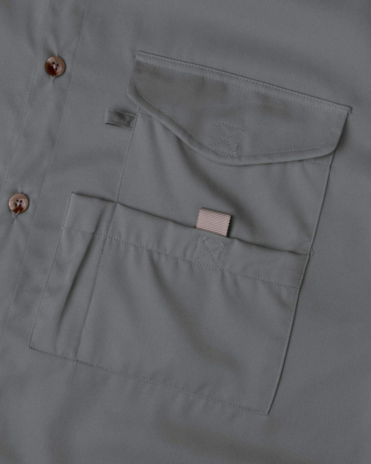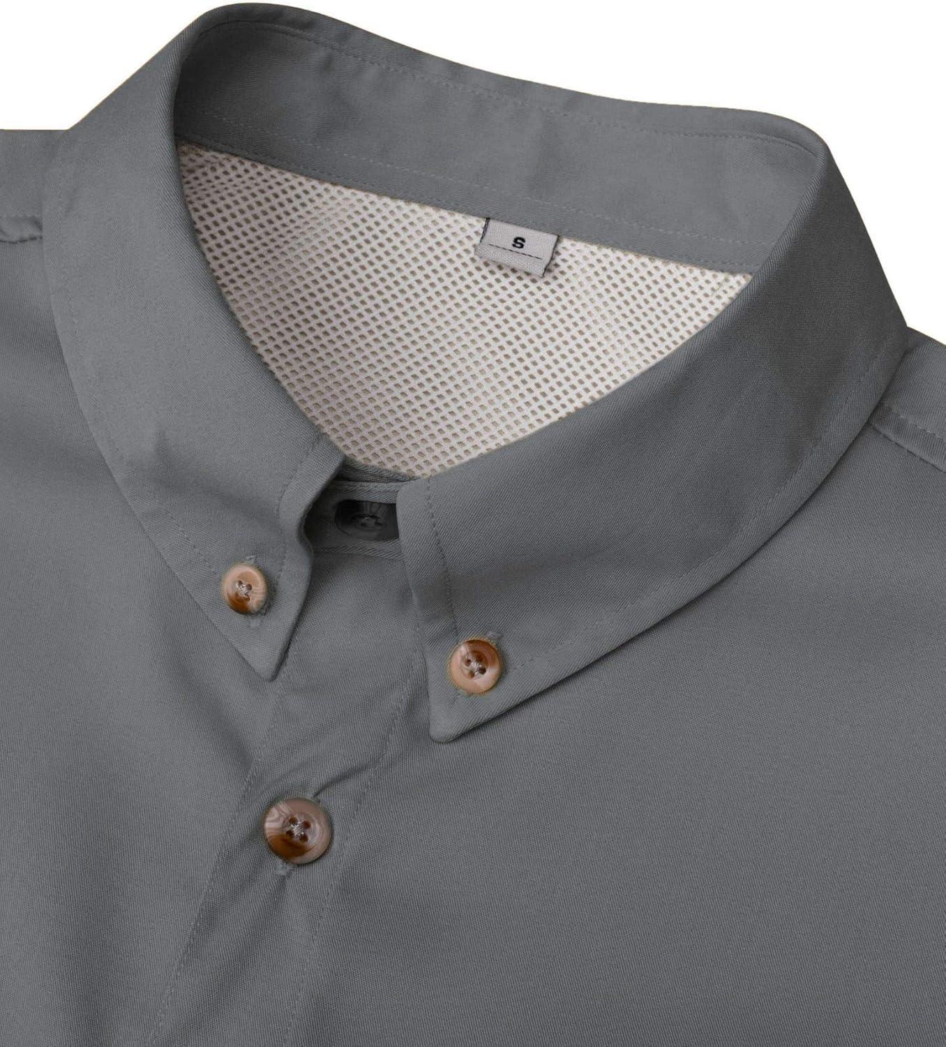 • Alimens & Gentle Short Sleeve Fishing Shirt Wicking Fabric Sun Protection Casual Button Down Shirts(Grey)
