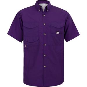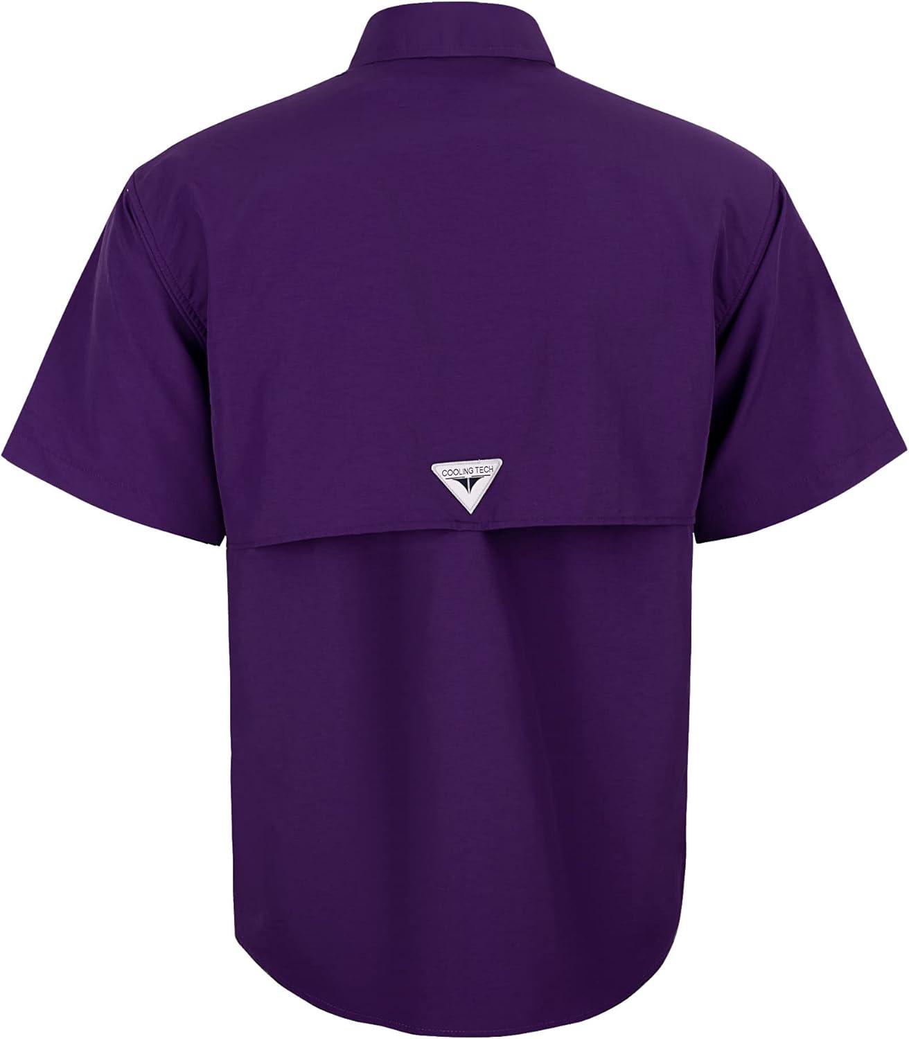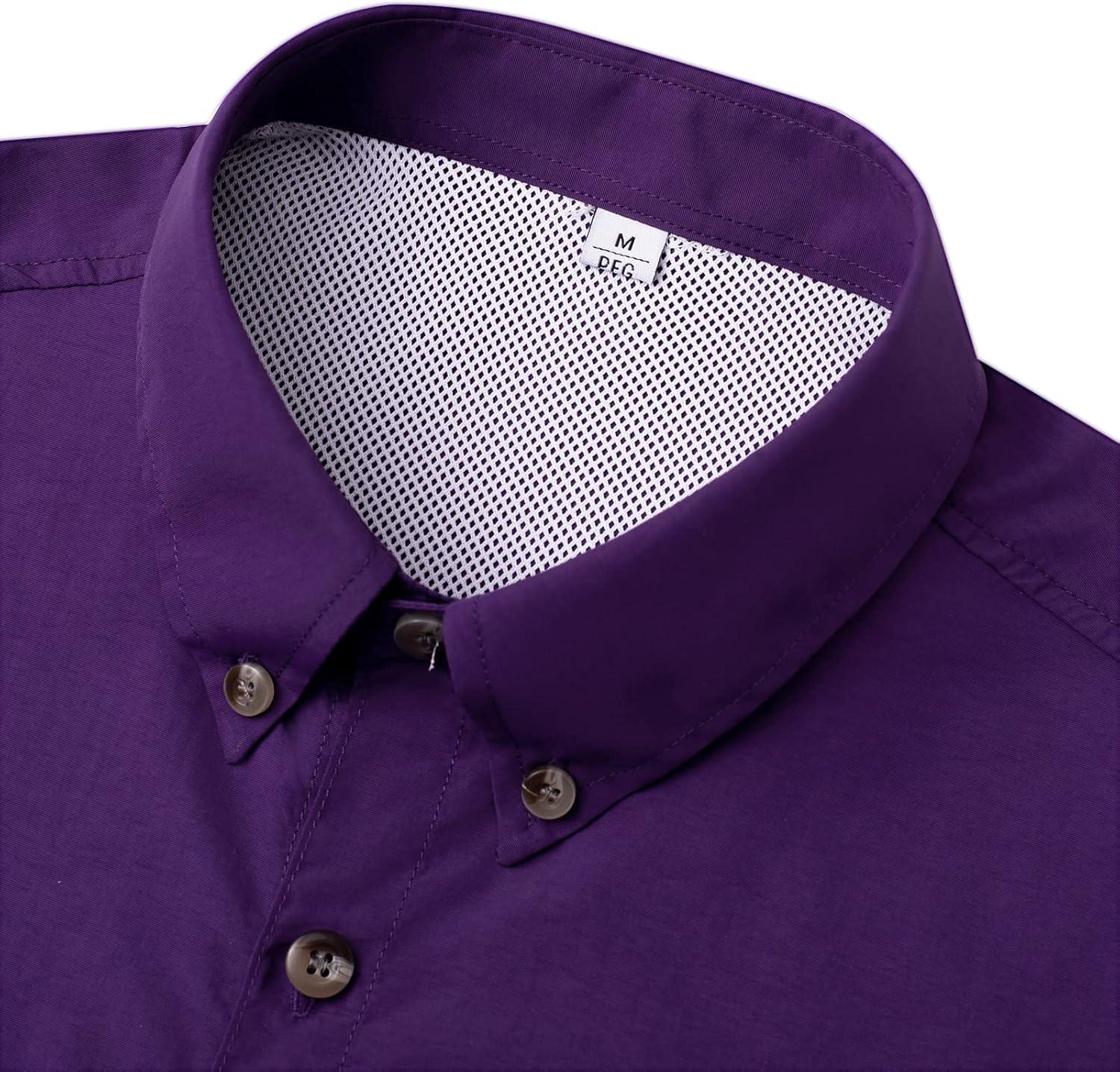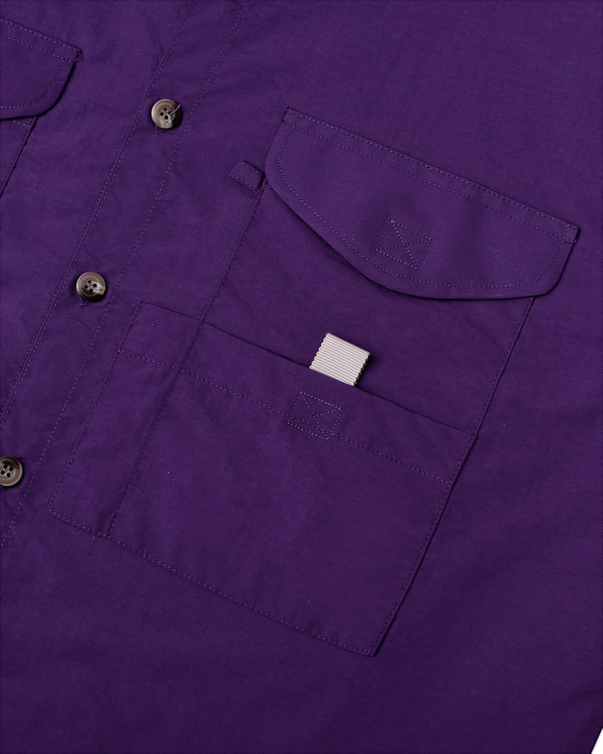 • Alimens & Gentle Short Sleeve Fishing Shirt Wicking Fabric Sun Protection Casual Button Down Shirts(Dark Purple)