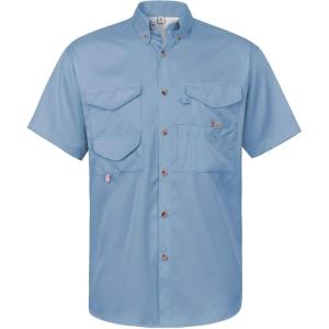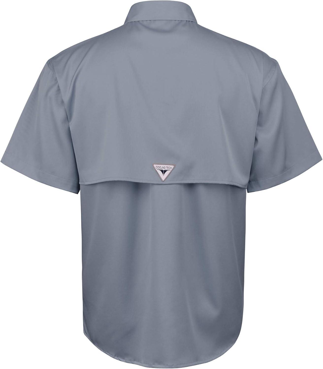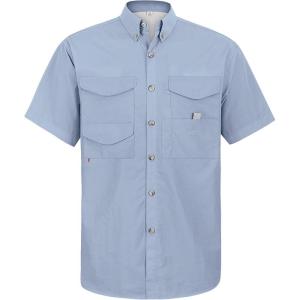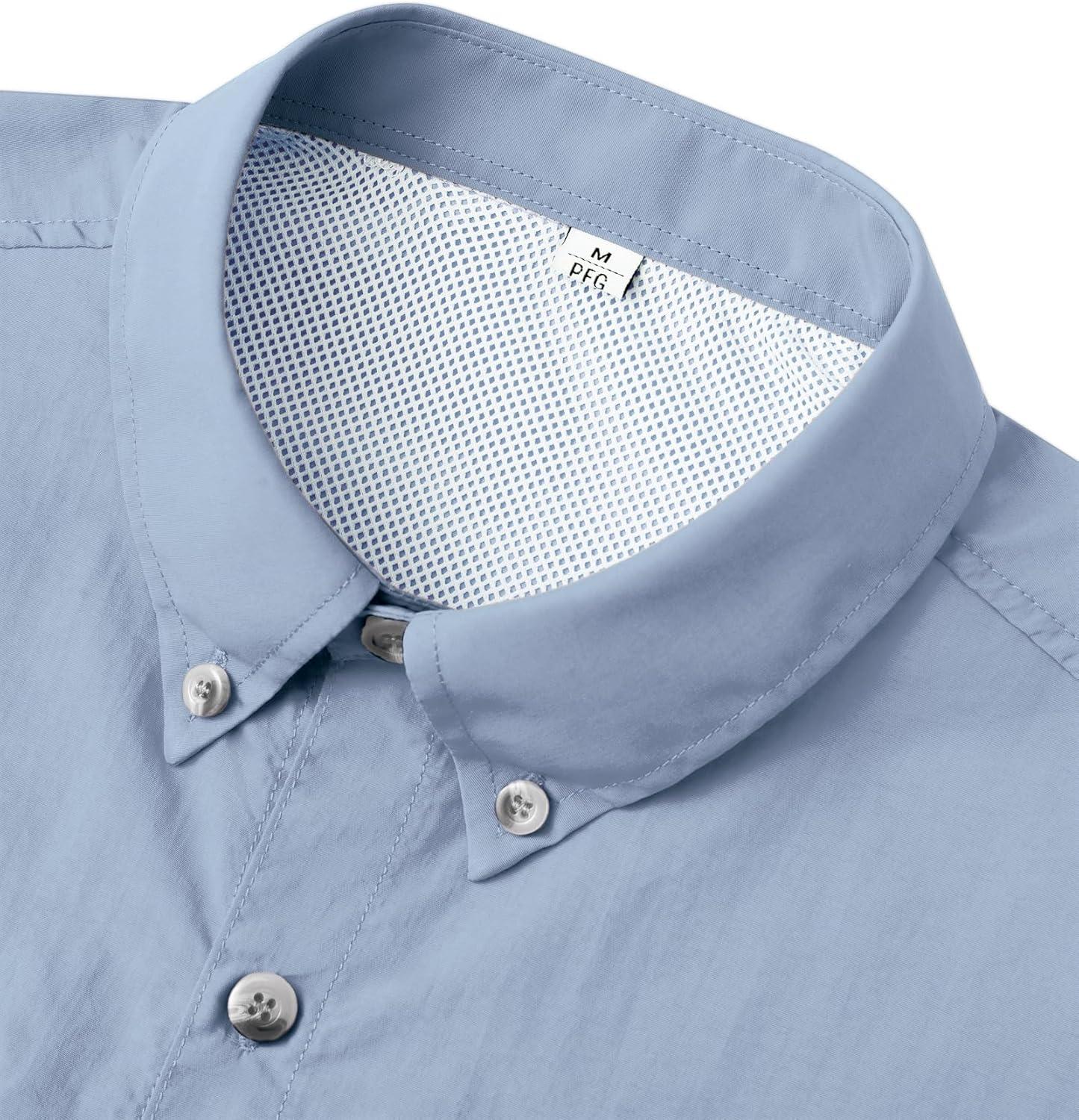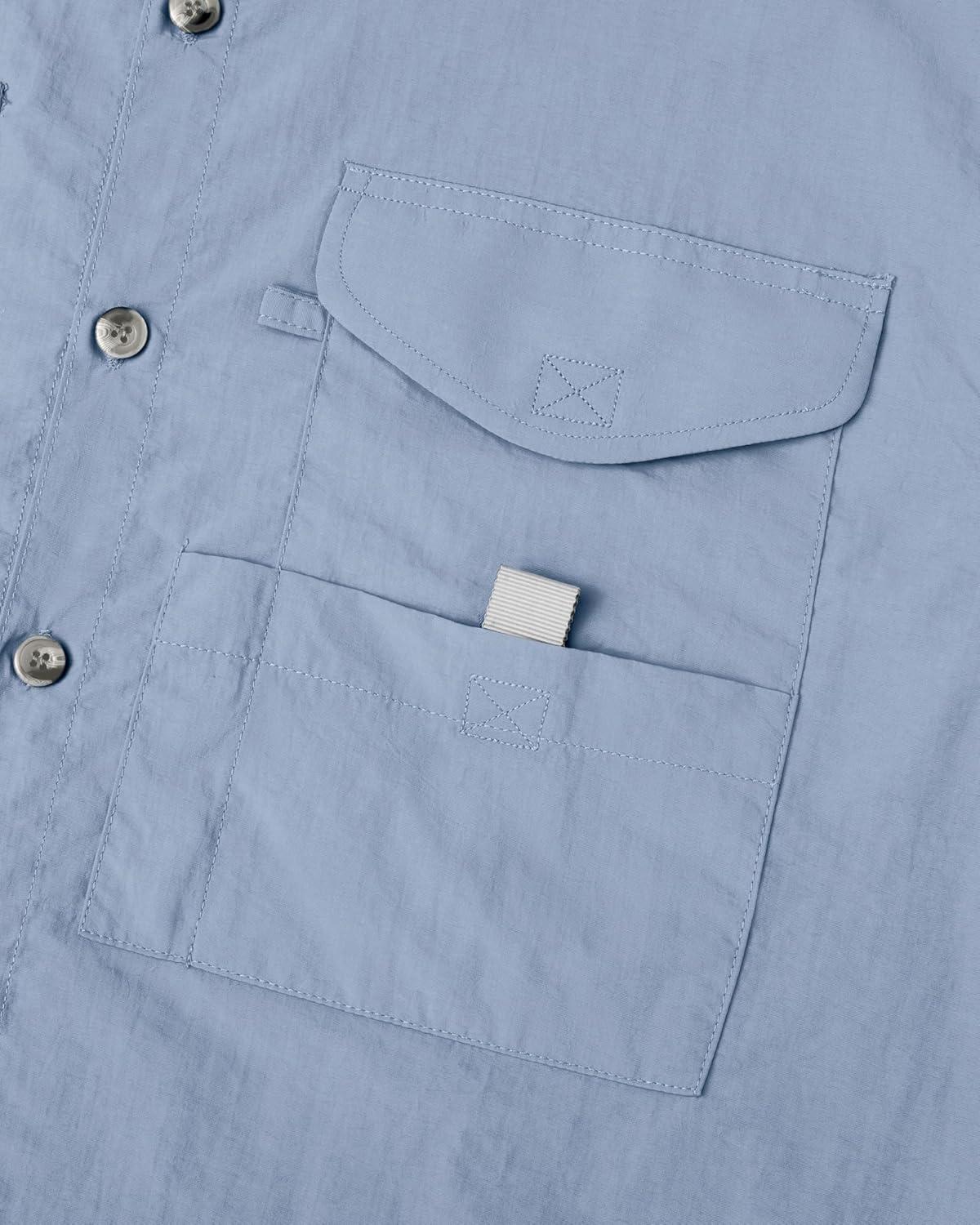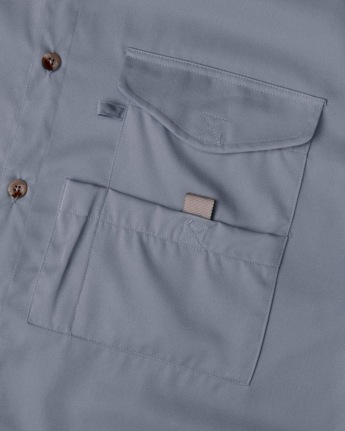 • Alimens & Gentle Short Sleeve Fishing Shirt Wicking Fabric Sun Protection Casual Button Down Shirts(Grayish Blue)