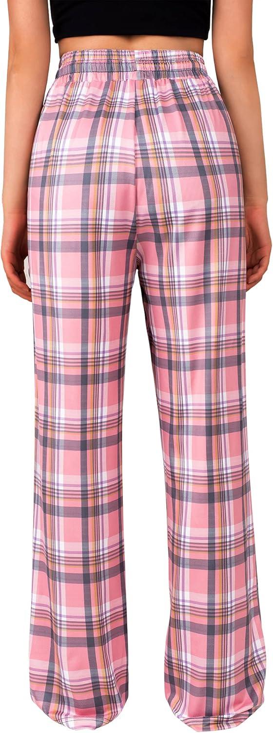 • Alimens & Gentle Womens Pajama Pants Plaid Stretch Comfy Lounge Pants Drawstring Waist Sleep Bottoms with Pockets(Pink)