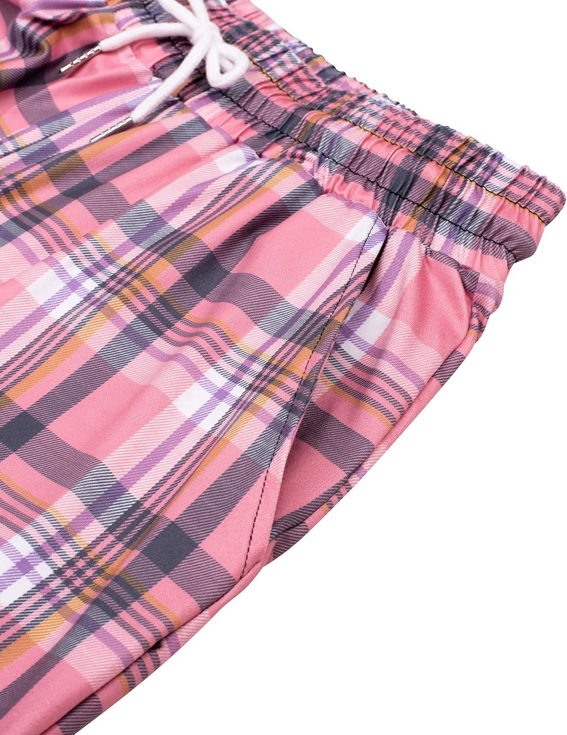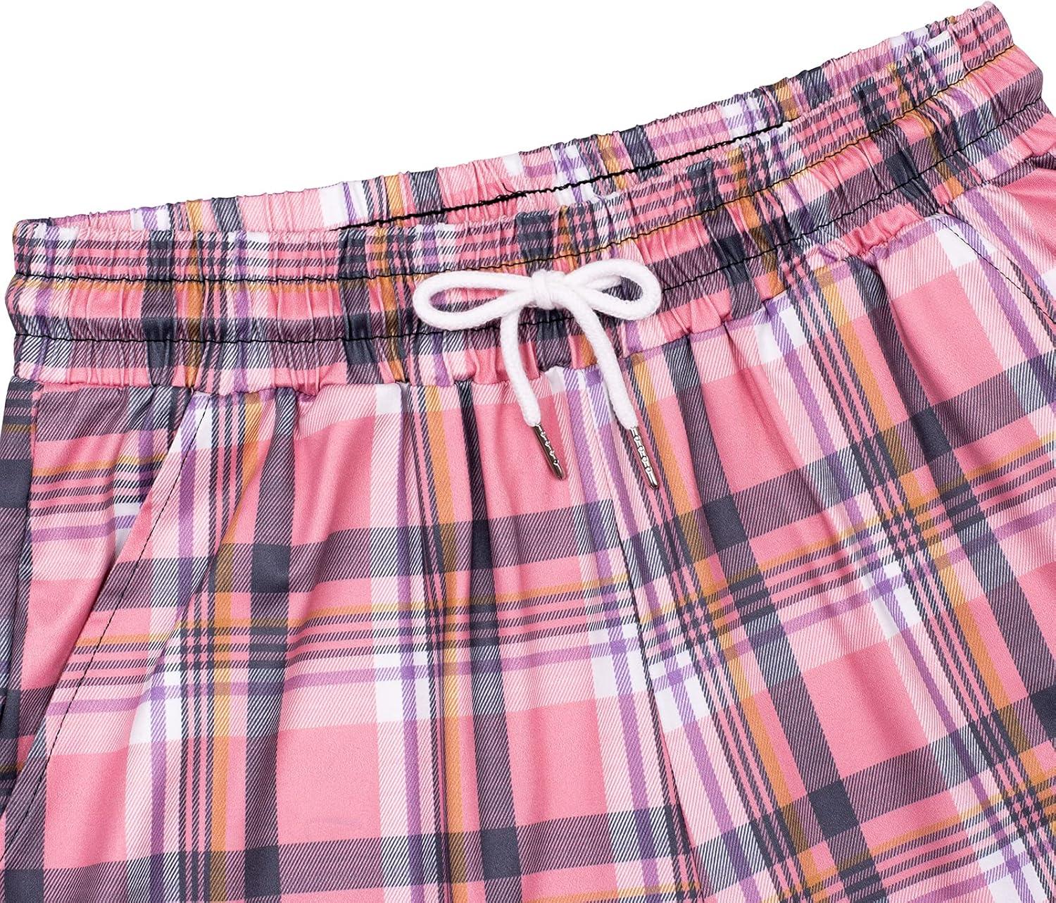 Alimens & Gentle Womens Pajama Pants Plaid Stretch Comfy Lounge Pants Drawstring Waist Sleep Bottoms with Pockets(Pink)