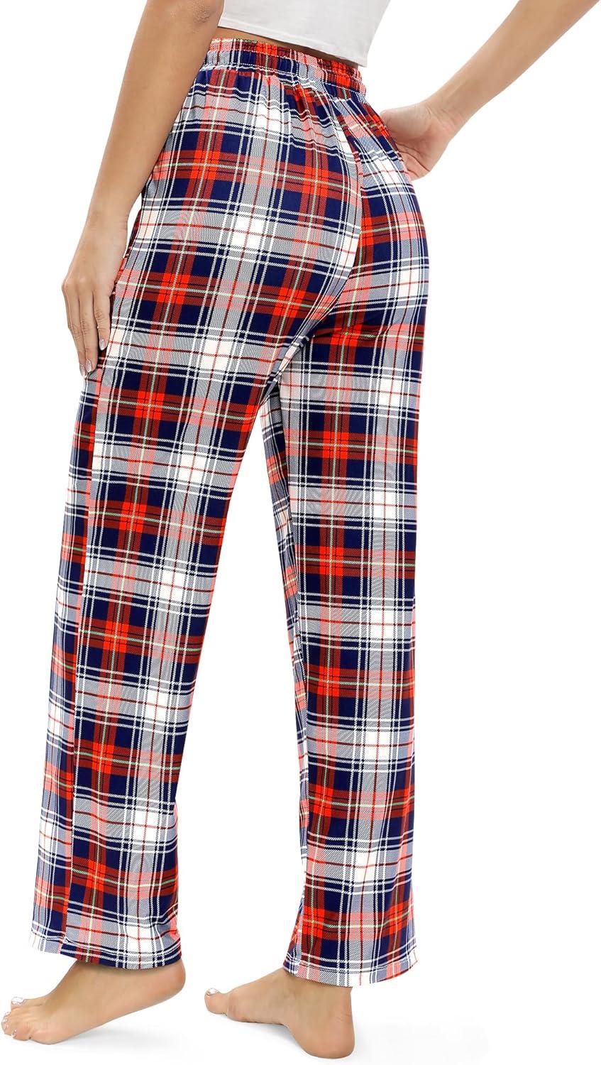 • Alimens & Gentle Womens Pajama Pants Plaid Stretch Comfy Lounge Pants Drawstring Waist Sleep Bottoms with Pockets(Red Navy white)
