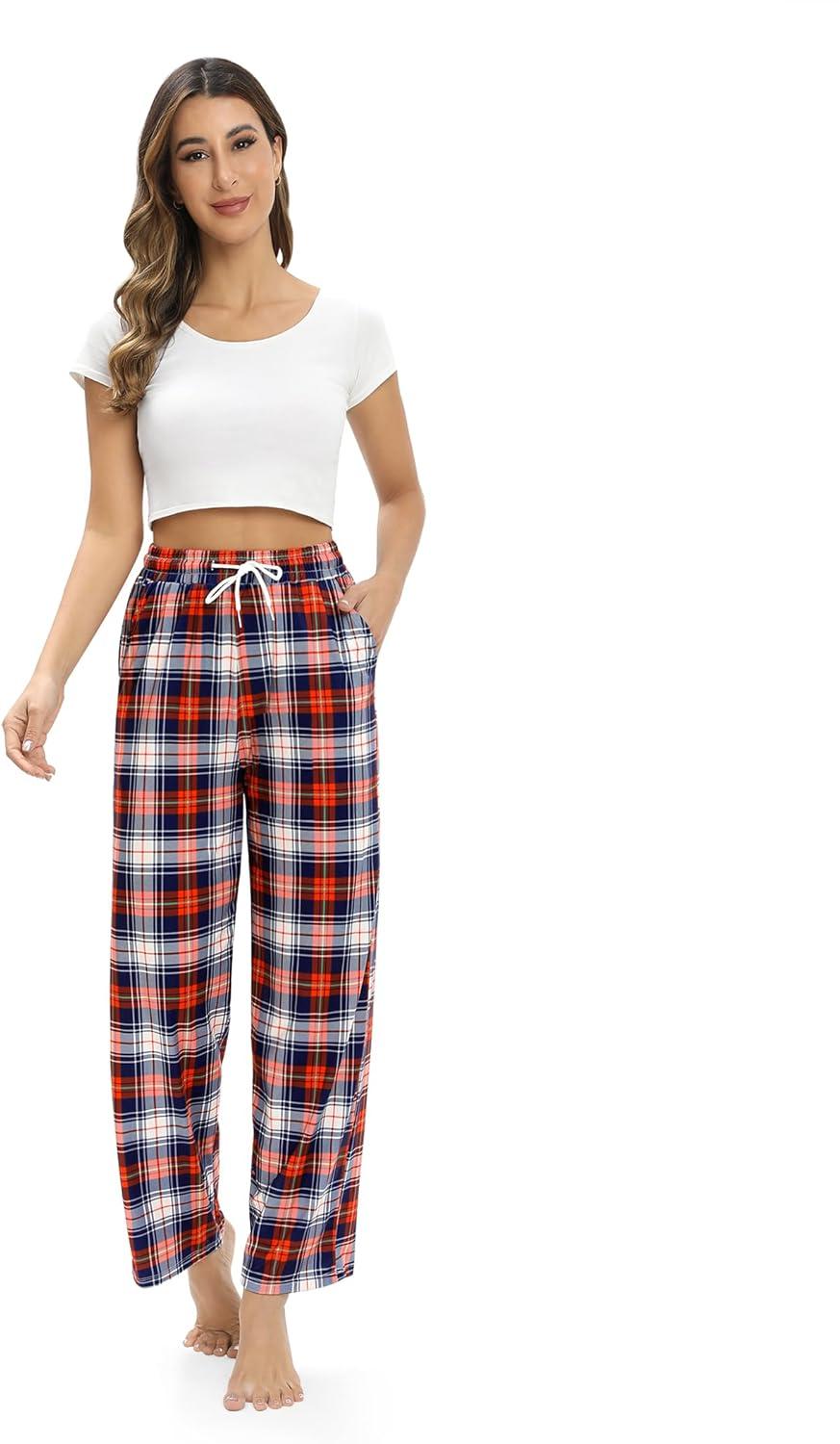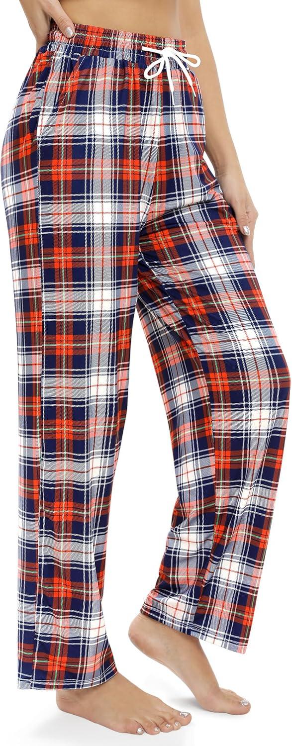 • Alimens & Gentle Womens Pajama Pants Plaid Stretch Comfy Lounge Pants Drawstring Waist Sleep Bottoms with Pockets(Red  Navy white)