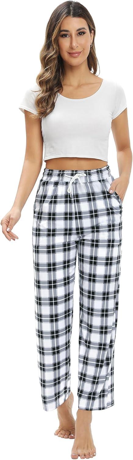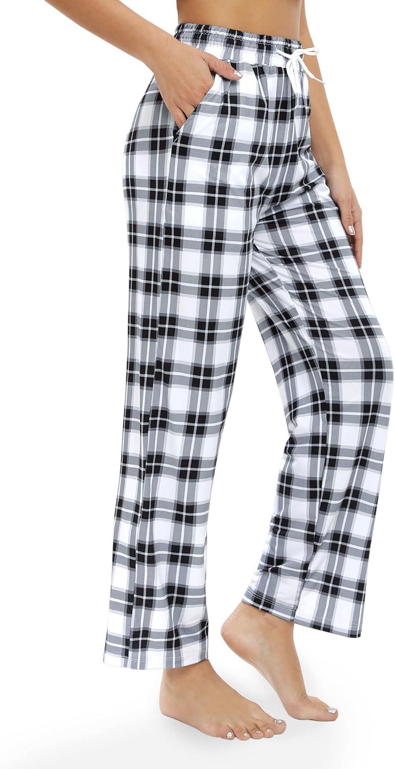• Alimens & Gentle Womens Pajama Pants Plaid Stretch Comfy Lounge Pants Drawstring Waist Sleep Bottoms with Pockets(Black&white)
