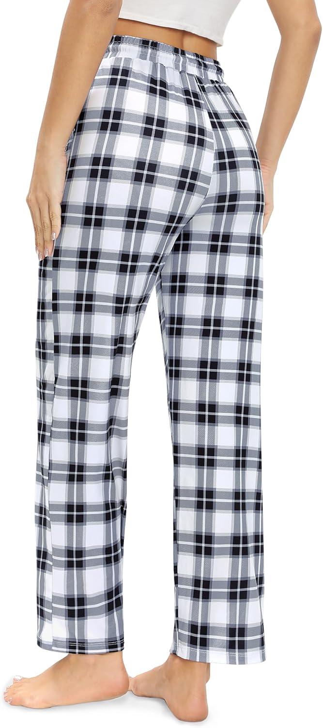 Alimens & Gentle Womens Pajama Pants Plaid Stretch Comfy Lounge Pants Drawstring Waist Sleep Bottoms with Pockets(White black plaid)