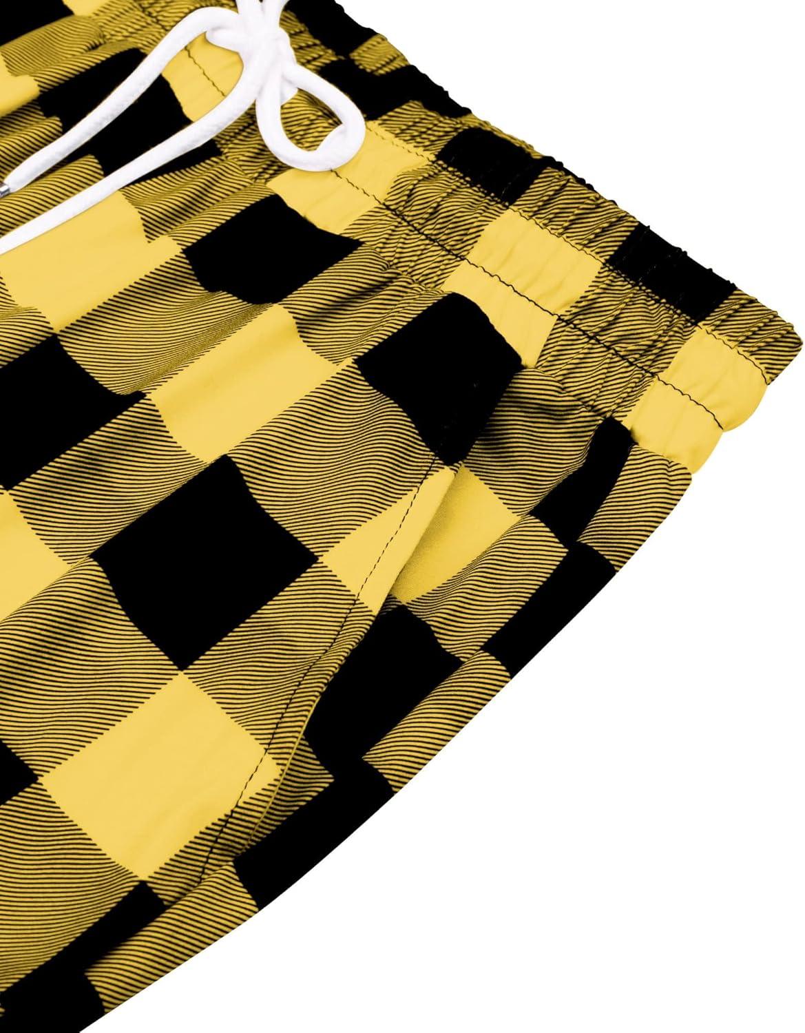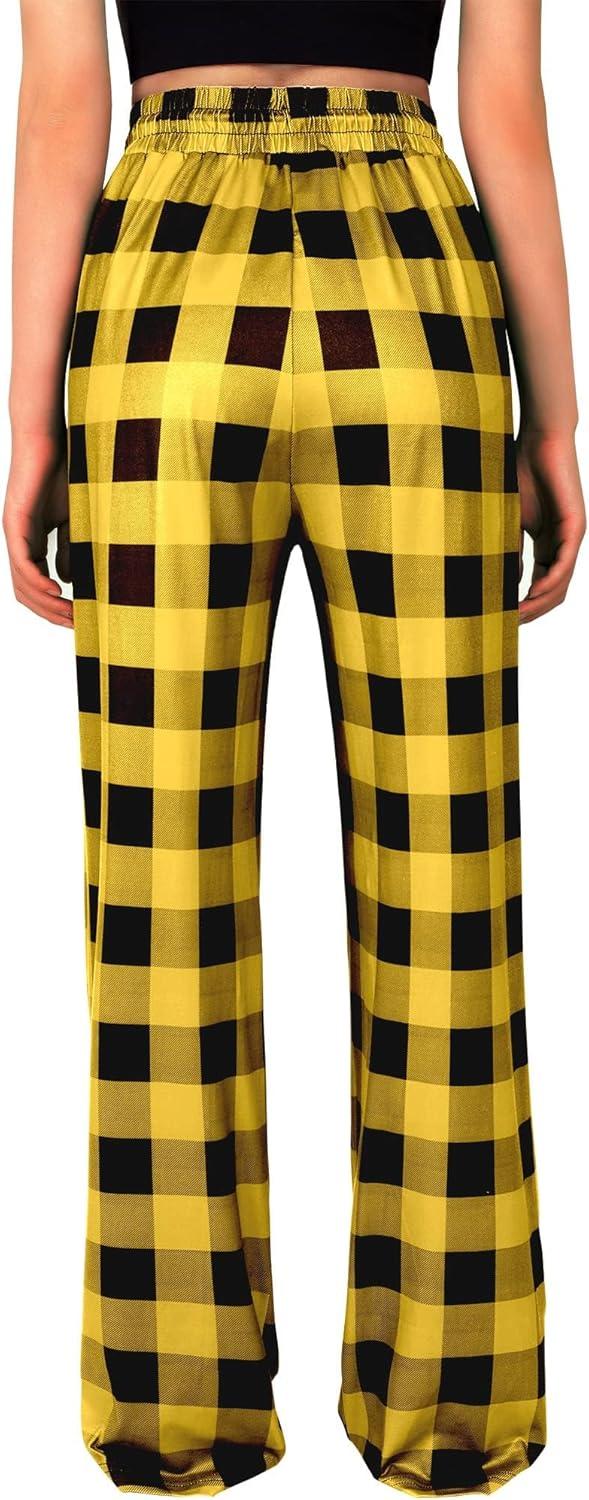 Alimens & Gentle Womens Pajama Pants Plaid Stretch Comfy Lounge Pants Drawstring Waist Sleep Bottoms with Pockets(Yellow&black)