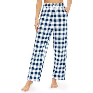 • Alimens & Gentle Womens Pajama Pants Plaid Stretch Comfy Lounge Pants Drawstring Waist Sleep Bottoms with Pockets(Navy white)