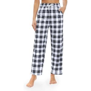 • Alimens & Gentle Womens Pajama Pants Plaid Stretch Comfy Lounge Pants Drawstring Waist Sleep Bottoms with Pockets(White black plaid)